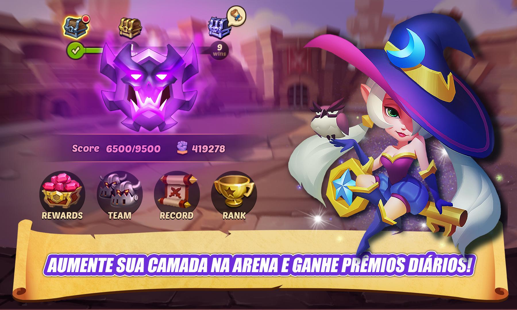 Você pode enviar uma equipe de heróis para uma batalha auto, que retornará periodicamente para pegar o troféu. Mesmo quando estiver offline, seus heróis poderão continuar lutando sob seu comando. Um mar de recursos a poucos toques!