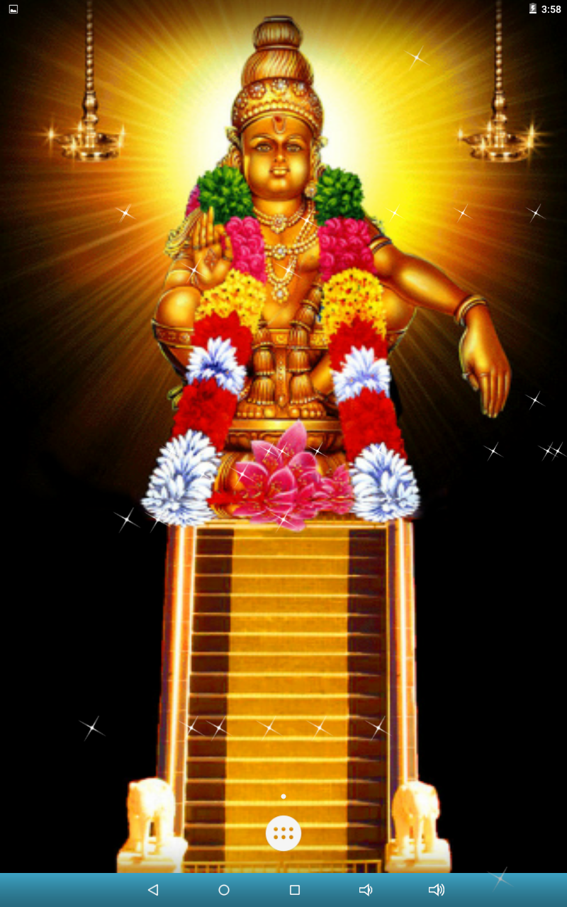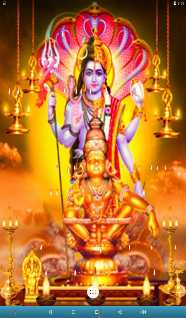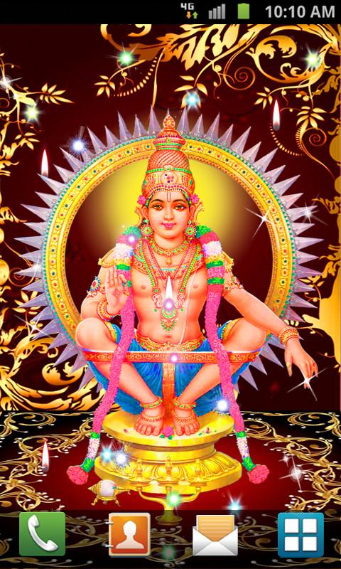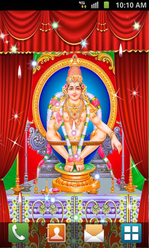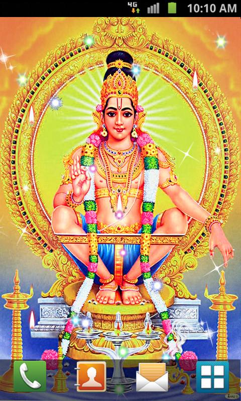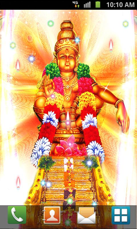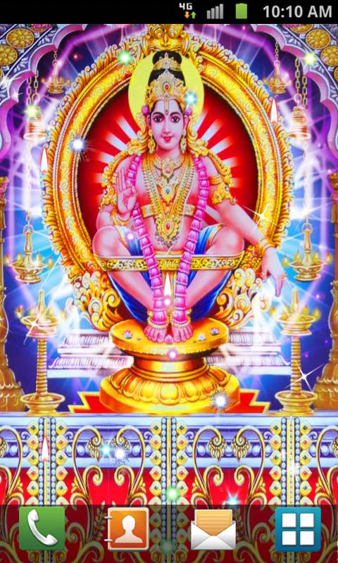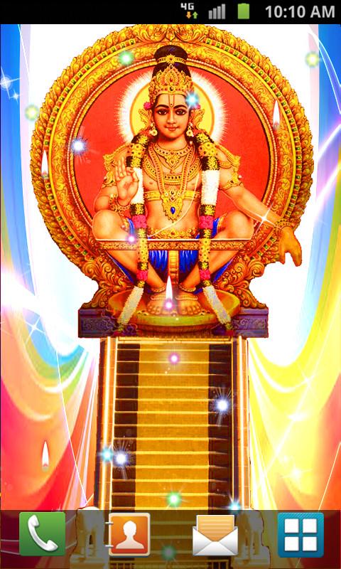 This is a beautiful high quality animated live wallpaper of lord ayyappan. It features bhagwan ayyappa with floating starts and flame. Lord ayyappan also called Sastavu or Sasta is a Hindu deity who is believed to be an incarnation of Dharma Sasta, the offspring of Shiva and Vishnu (in the form of Mohini, his only female avatar), He is generally depicted in a yogic posture, wearing a jewel around his neck, hence named Manikandan. Lord ayyappan may bear a historical relationship to the tutelary deity Aiyanar in Tamil Nadu. There are various tales connected with lord ayyappa: the discovery of the child at pampa, Manikandan's youthful days in the Pandalam palace, bestowing the power of hearing and speaking upon the deaf and dumb son of His teacher as Guru-dakshina, His friendship with Vavar, bringing the tigress's milk, accomplishing His divinely destined mission of annihilation of the demoness Mahishi, eliminating the forest-thug Udayanan, bestowing moksha on Sabari, blessing His father with moksha. Raja Rajasekhara was in his previous birth a rich and pious 'brahmin ' by name Vijayan who was a very strong believer and devotee of Lord Dharma Sastha. Manikanta learnt Martial arts Kalari to cheerappanchira, the Muhamma of today in Alappuzha district. Guru panicker's daughter Nila fall in love with Lord Manikanta but he refuses to marry telling he is a Bhrammachari and has a mission. She offers sweet payasam which turned to Aravanapayasam today. By the 20th century, there has been an increase in the number of worshipers of god ayyappan from many different groups, spurred by vast improvements in transport and communication in southern India God ayyappan's annual festival is a time of pilgrimage for ever-growing numbers of men from throughout South India. The most prominent and famous ayyappan shrine is the one at Sabarimala, in the hills of Pathanamthitta in Kerala, with over 30 million devotees visiting it every year, making it one of the largest pilgrimage sites in the world. These devotees fast and engage in austerities under the leadership of a Periya Swami (one who has undertaken the pilgrimage to Sabarimala for 18 years) for weeks beforehand and then travel in groups to the shrine for a glimpse of ayyappan. Bus tickets are hard to obtain for several weeks as masses of elated men, clad in distinctive ritual dhotis of saffron, black and light blue colors, throng public transportation during their trip to the shrine. Various names of Ayyappan: Dharmasasta, Hariharasutan, Manikandan, Sathanar, Sastan, Cattan (from Sanskrit Sasta), Ayyanar, Natrayan, Nattarasan, Bhutanathan, and Shanmuka nathan. Get swamy sharanam ayyappa live wallpaper for free, have devotional enjoy every minute you look at your phone screen.
