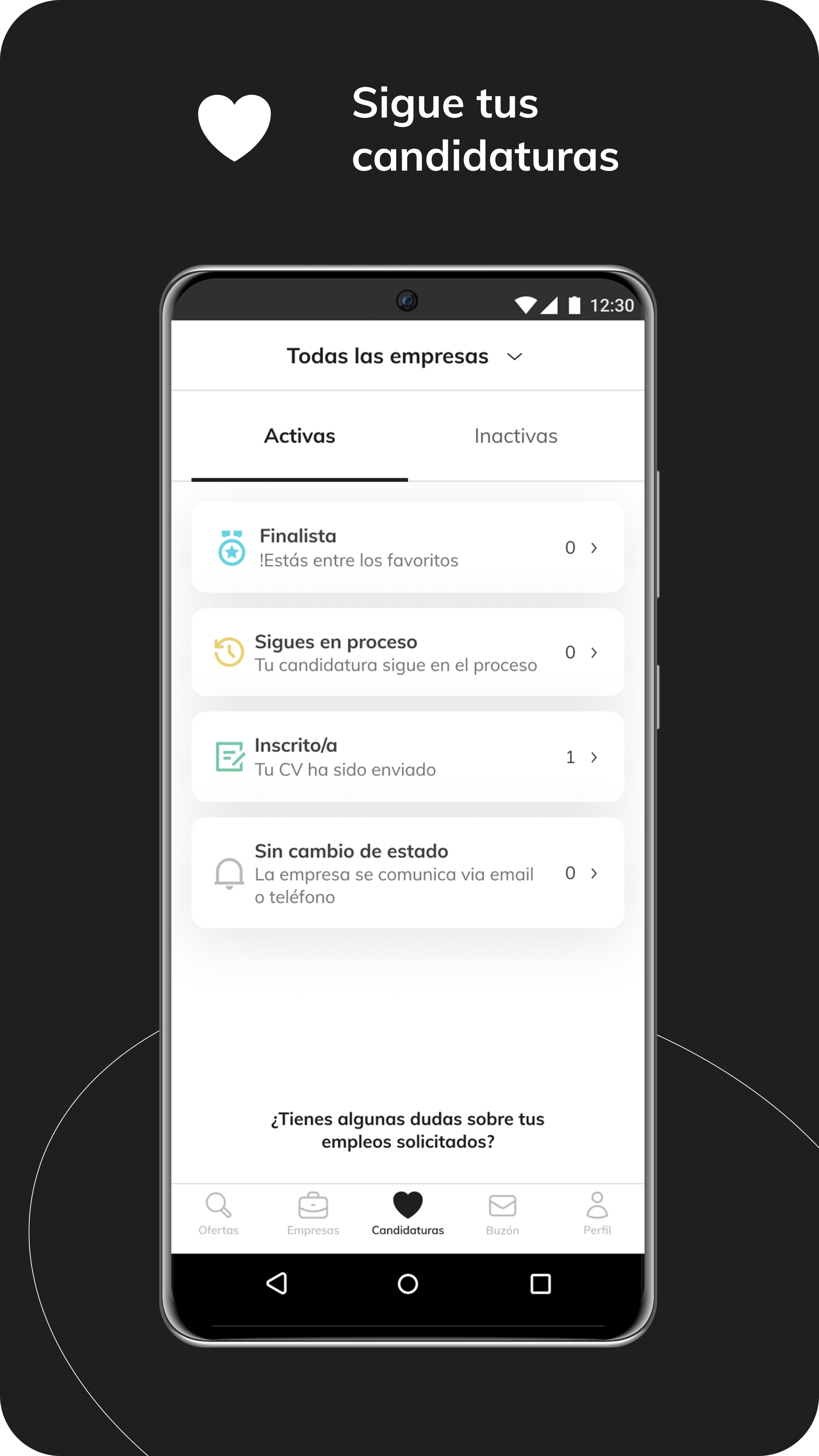 Não queremos que você perca nada! Conheça todo o andamento de suas inscrições em tempo real: receba feedback e notificações de cada uma das mudanças: quando seu currículo é revisado, se você passar para a próxima fase ou se não for selecionado.