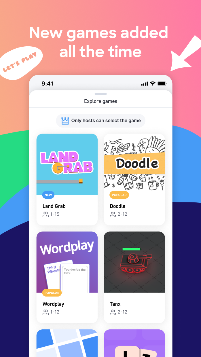Connecting with your favorite groups has never been easier! When you login and make a Space, you’ll have a dedicated place to connect and play with friends. All the Spaces you create or join will be saved automatically, and when you’re in the app, you can see who is actively playing in the Space Directory.