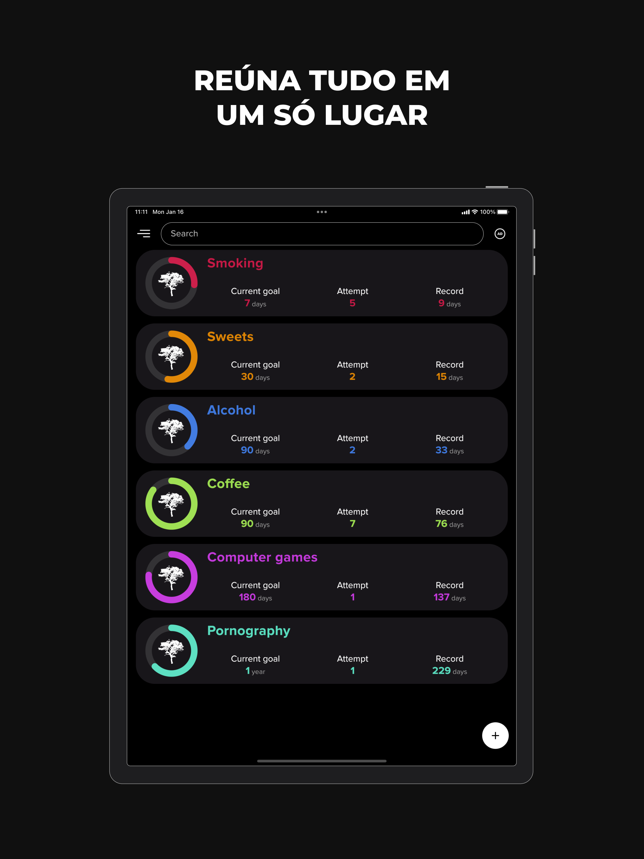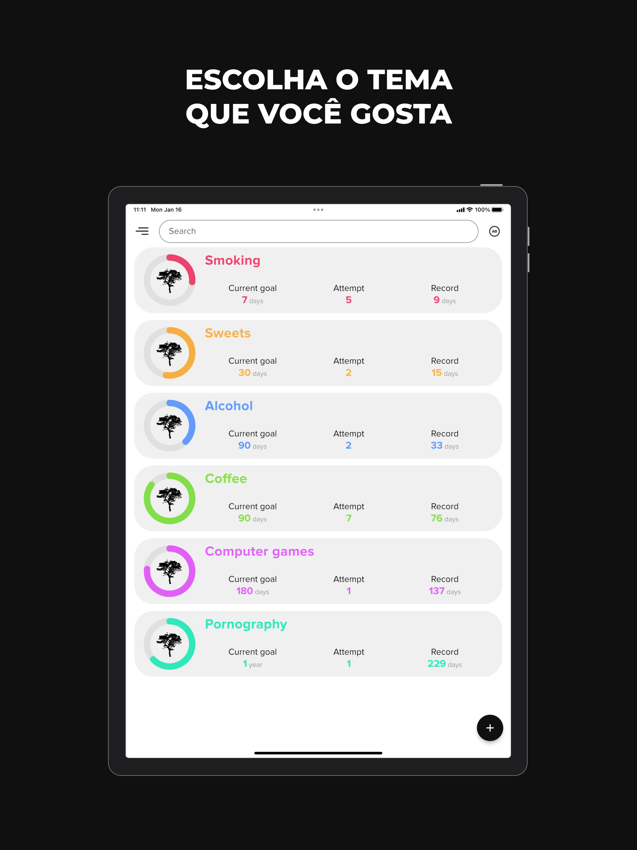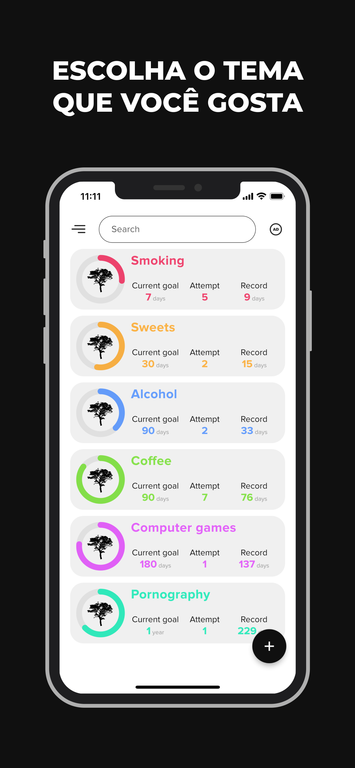 Largar Vícios é um aplicativo poderoso projetado para ajudá-lo a superar qualquer vício, seja ele álcool, nicotina, cafeína, jogo de azar ou qualquer outro vício. Largar Vícios não é apenas um aplicativo, é seu parceiro de confiança que o acompanha em sua jornada de autodesenvolvimento. Este rastreador de hábitos dá a você uma vantagem ao proporcionar a capacidade de manter um histórico detalhado de seu progresso. Adicione notas sobre seus pensamentos, sentimentos, eventos notáveis e até recaídas. Ao examinar seus registros pessoais e entender seus padrões, você está melhor equipado para controlar seus comportamentos viciantes. Além disso, nosso aplicativo é o seu motivador e guia, definindo constantemente novos objetivos alcançáveis para mantê-lo no caminho certo. É hora de retomar o controle de sua vida e dar um basta nos comportamentos viciantes que têm lhe impedido. Principais recursos: - Um companheiro diário perfeito para uso diário. - Adequado para todos os tipos de vícios e maus hábitos, como fumar, beber, pornografia, jogar. - Capacidade de rastrear um número ilimitado de hábitos. - Cronômetro regressivo que exibe o tempo (número de dias, horas, minutos e segundos) decorrido sem se envolver em um mau hábito. - Histórico detalhado para estatísticas e análise aprofundada e melhor compreensão de seus padrões de comportamento. - Recurso de anotações para capturar seus sentimentos e pensamentos. - Exibição do número de tentativas para mostrar seu progresso. - Registros pessoais que o motivam a superar seus limites. - Metas constantemente atualizadas para melhoria contínua. - Personalização de cada hábito para se adequar às suas necessidades únicas. - Conteúdo útil que ajuda em sua jornada de abandonar maus hábitos. - Alternando entre o tema claro e escuro de acordo com sua preferência. - Suporte multilíngue, tornando-o acessível a usuários em todo o mundo. - Um design minimalista que garante uma navegação amigável ao usuário. - Totalmente gratuito, porque acreditamos em acessibilidade e igualdade em autodesenvolvimento. Entre na sua nova vida e diga adeus aos maus hábitos e vícios. Com Largar Vícios, uma vida mais saudável e feliz está a apenas um aplicativo de distância. Desejamos-lhe boa sorte!