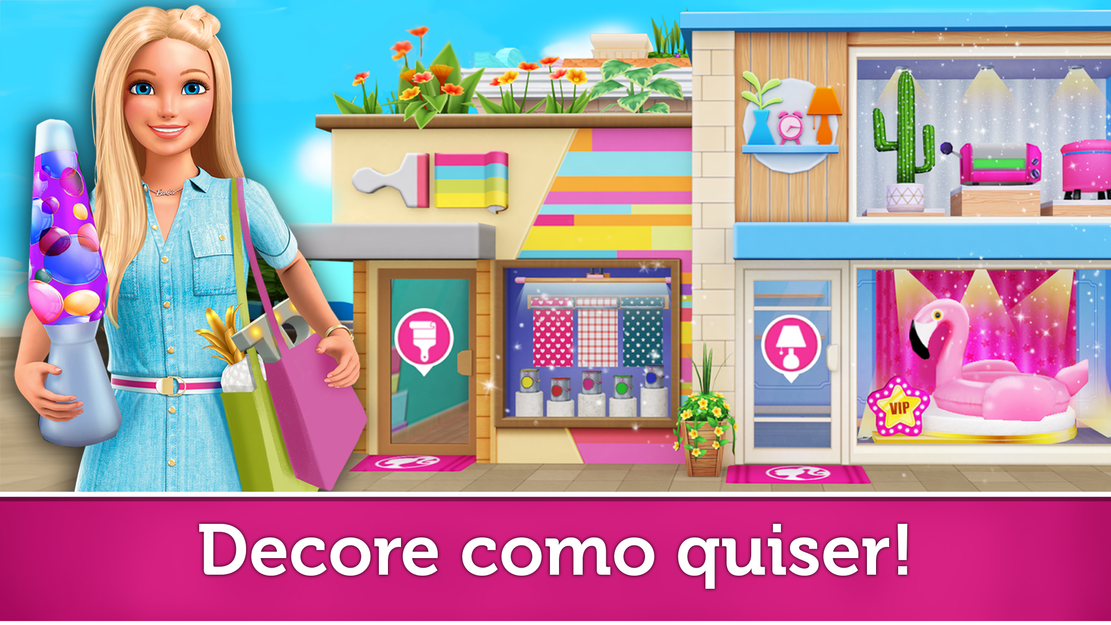 Crie a sua própria experiência na Casa dos Sonhos da Barbie! Você pode projetar cada cômodo. Conheça meus melhores amgos, meus cãezinhos e a Blissa! Junte-se a nós para um monte de atividades divertidas na Casa dos Sonhos: cozinhar, dançar ou festas épicas na piscina! Saia e explore Malibu com meu conversível rosa para atividades ainda mais divertidas. Além disso, vista a mim e meus amigos com visuais da moda para ficarmos lindas nas fotos! Siga-nos em emocionantes aventuras na Casa dos Sonhos, onde tudo é possível!