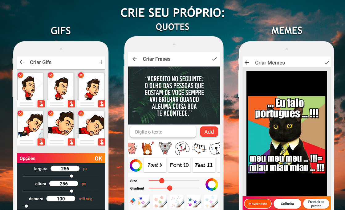 Phrase Creator:Nossa aplicação de frases lindas para facebook oferece uma ferramenta exclusiva onde você poderá criar suas próprias frases e pensamentos com os melhores fundos que você pode encontrar na seção de wallpapers. Não é ótimo!