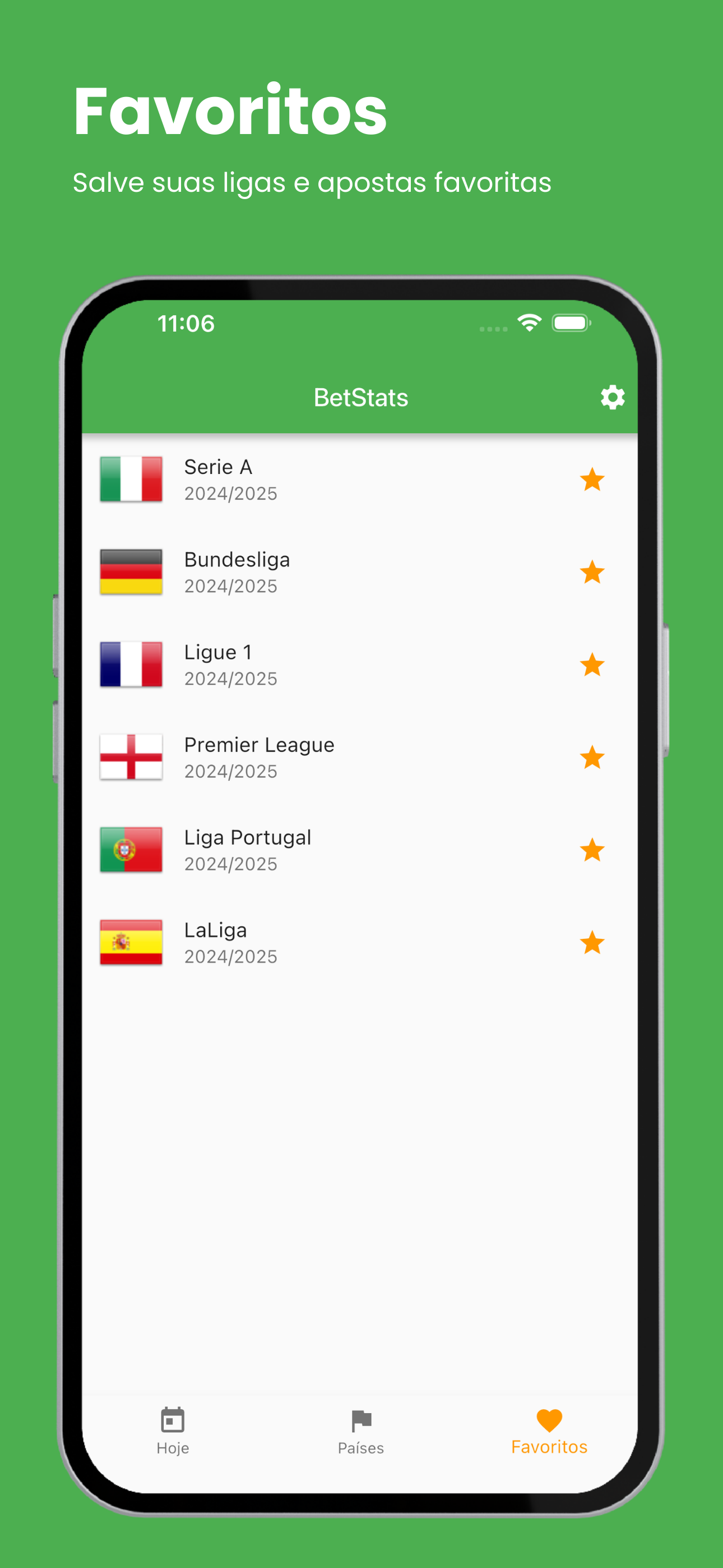 ⭐ Você pode marcar suas ligas favoritas para acessá-las rapidamente e começar a analisar suas previsões com uma interface simples e prática.