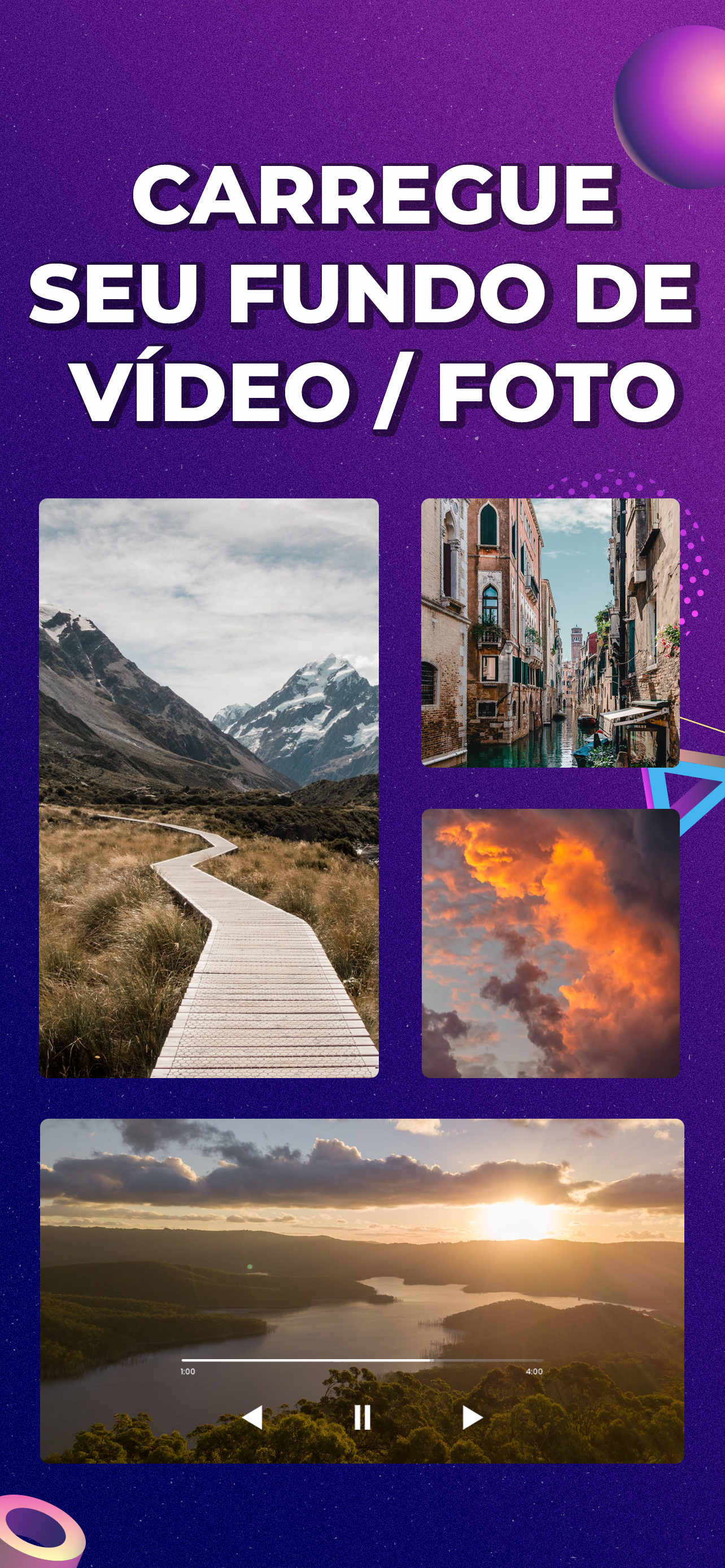 VARIEDADE INCRÍVEL DE TELAS DE FUNDO: escolha sua tela de fundo em uma galeria enorme de cores, imagens e vídeos carregados no aplicativo. Veja como ficará em uma floresta tropical ou no espaço sideral!