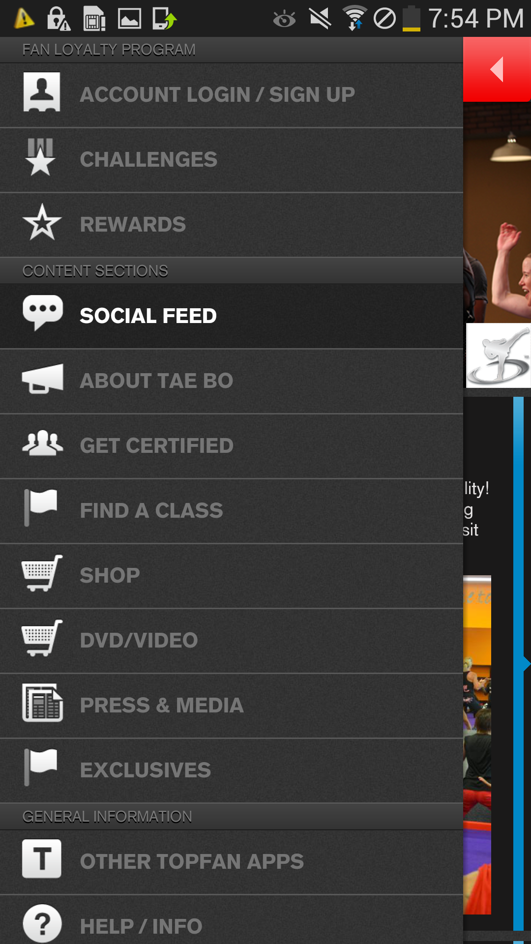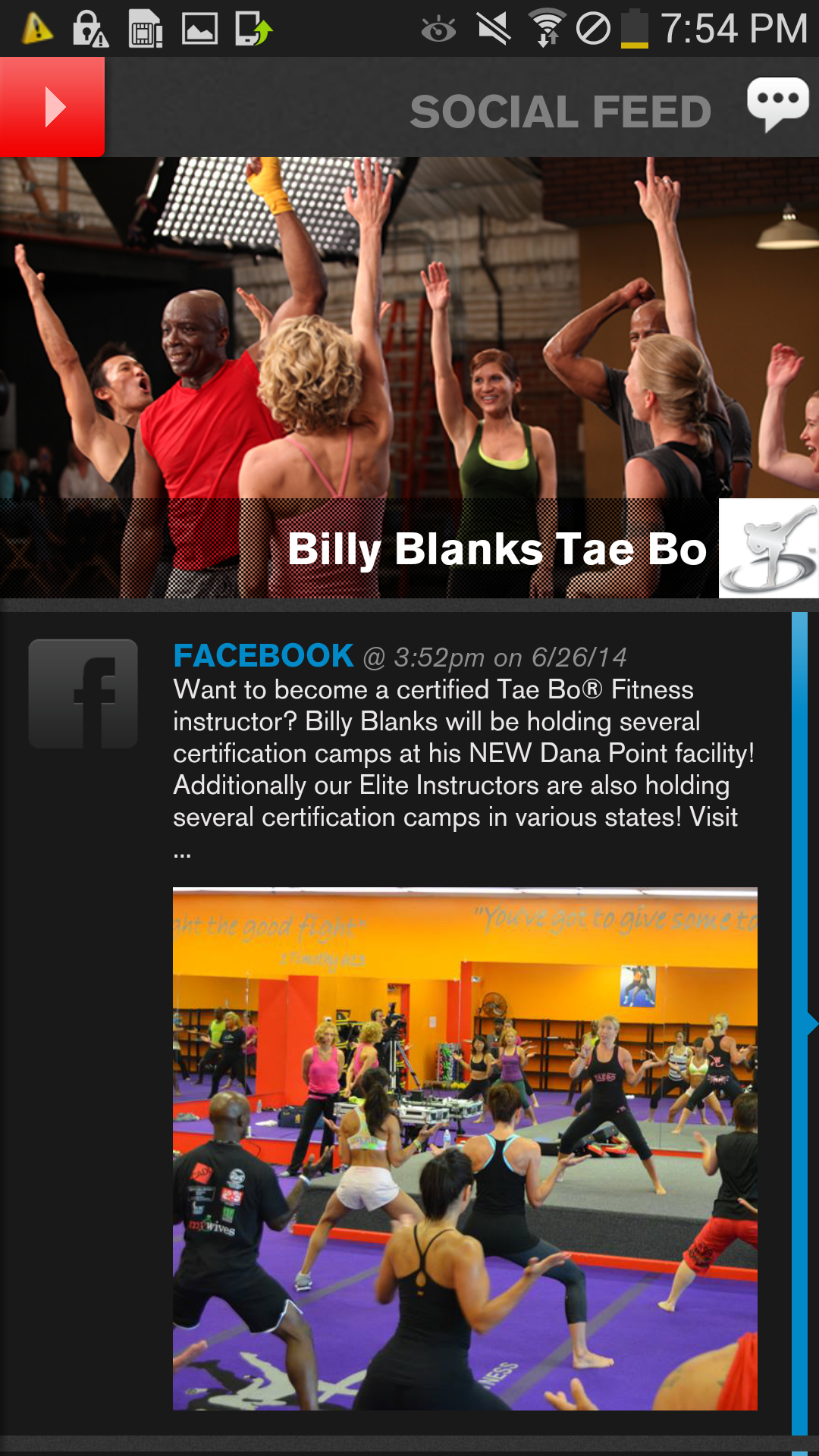 •Social feed including Twitter, Instagram and Facebook Posts made directly by Tae Bo® Fitness