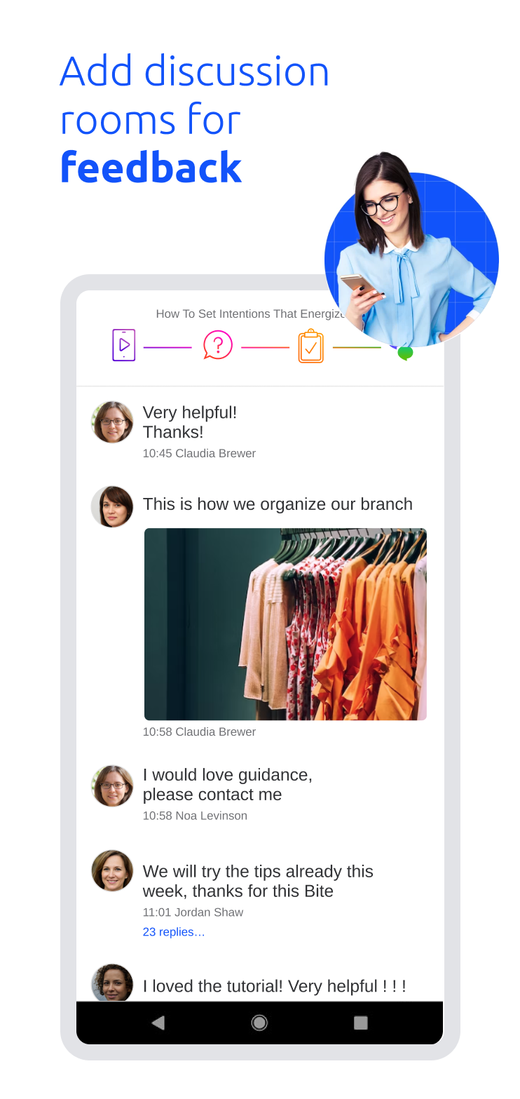 O Bites é uma solução inovadora para integração, treinamento e compartilhamento de conhecimentos profissionais com funcionários da linha de frente e de frente. Crie seu conteúdo com a mesma facilidade que criaria uma "história" nas redes sociais, envolva-o em um fluxo único de quatro estágios e compartilhe-o instantaneamente com seus colegas de equipe por meio dos canais existentes. Desenvolvemos um aplicativo de criação de conteúdo poderoso e intuitivo, como "história". Inspirado nas redes sociais, esse aplicativo permite que os criadores de conteúdo criem conteúdo eficaz e atraente, com a mesma facilidade e simplicidade que a criação de uma história nas redes sociais, mas com os ajustes necessários nas configurações profissionais. Cada conteúdo profissional criado é "agrupado" em uma unidade de conteúdo exclusiva que chamamos - uma mordida. A Bites se orgulha de fornecer a tecnologia de engajamento no local de trabalho mais eficaz, com a facilidade de implementação de sua tecnologia para Funcionários e Empregadores, bem como sua metodologia de aprendizado bem-sucedida (modelo de 4 etapas) que obteve sucessos significativos para as empresas ao redor. As 4 etapas são: A história> Pergunta> Resumo> Discussão Os três primeiros estágios capturam o ciclo completo de aprendizado: A história - começa quando os funcionários visualizam atentamente o conteúdo profissional criado no aplicativo de criação de conteúdo, geralmente com duração de aproximadamente 90 anos. Pergunta - Ele ou ela será questionada, na forma de várias respostas / perguntas em aberto, para promover o envolvimento ativo. Resumo - Logo depois, os funcionários receberão flashcards de resumo, consolidando os pontos de aprendizado mais importantes. Discussão - A quarta e última etapa oferece um espaço para os funcionários comentarem, fazerem perguntas e discutirem o conteúdo da Mordida com seus gerentes e colegas. Isso facilita o compartilhamento de conhecimento e uma maior comunicação em toda a organização. Nenhuma plataforma está completa sem a capacidade de monitorar. No painel avançado do Bites, você pode monitorar e acompanhar o progresso dos funcionários, visualizar análises avançadas de BI e receber notificações e informações.