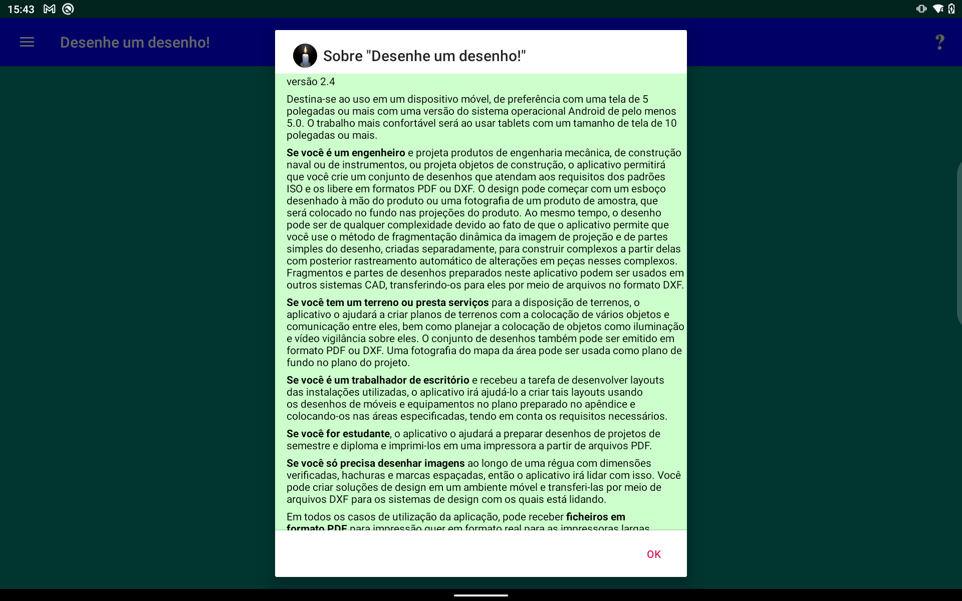 Esta aplicação também é aplicável onde quer que você precise apenas desenhar um desenho por dimensões.