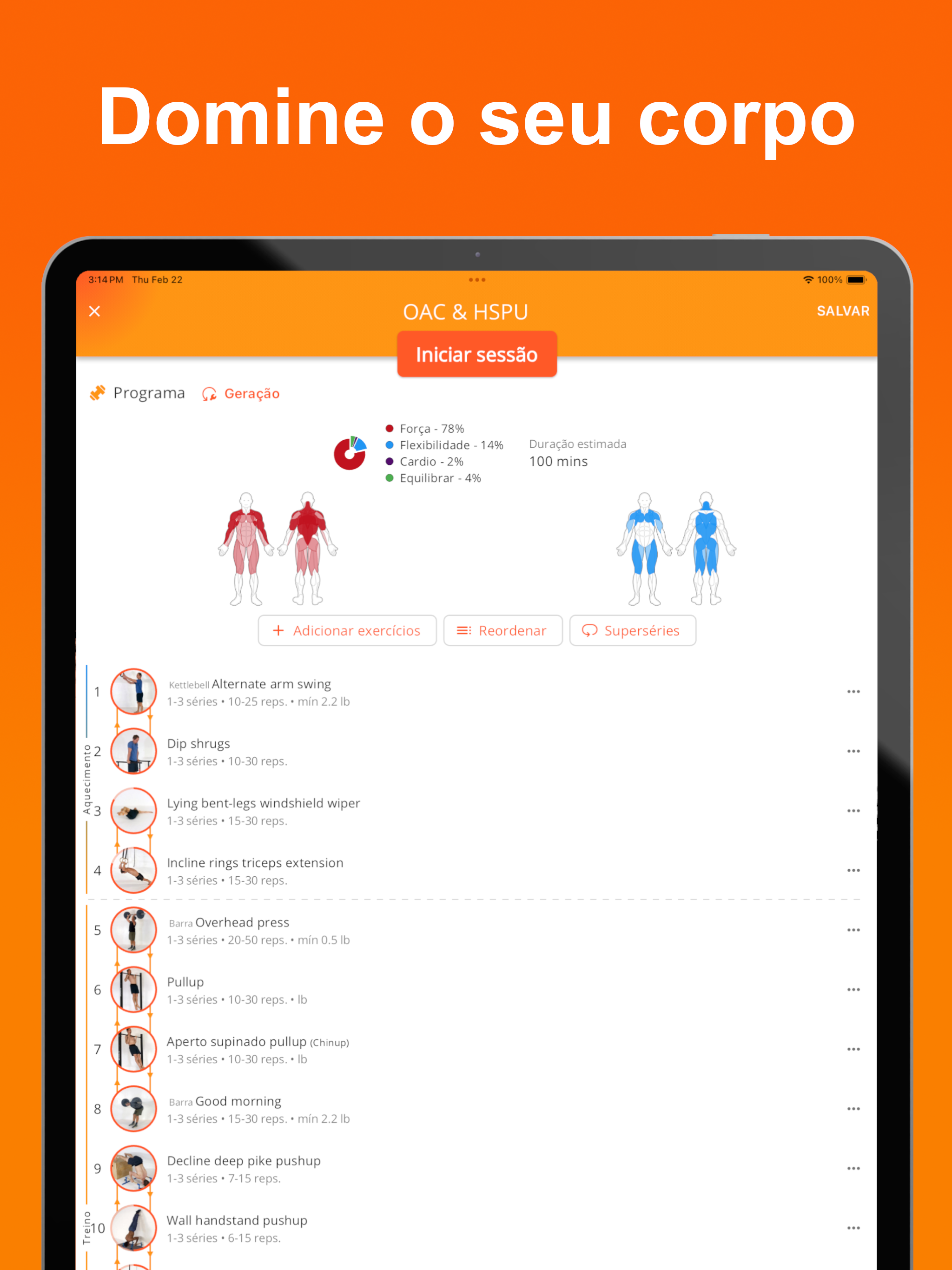 Treine em casa ou na academia, com ou sem equipamento, seja iniciante ou avançado, o aplicativo se adapta a você! Ele criará programas personalizados com base nos seus objetivos, equipamentos e experiência. Esses programas serão ajustados gradualmente ao longo do tempo com base no seu progresso, para que você possa sempre se aproximar dos seus objetivos. - Aprenda mais de 1200 exercícios com vídeos (estamos sempre adicionando mais!). - Gere programas de treinamento com base nos seus equipamentos, objetivos e nível. - Personalize seus treinos com peso adicional, contrapeso, faixas elásticas, opção excêntrica, RPE, tempos de descanso etc. - Acompanhe seu progresso com Registros pessoais, Maestria de exercícios e Pontos de experiência. - Siga progressões lógicas de dificuldade com a Árvore de habilidades - Encontre novos exercícios e treinos por músculo-alvo, articulação, equipamento, categoria, dificuldade etc. - Sincronize com o Google Fit. ---------- O que é ---------- Calistenia, ou exercícios corporais, é uma forma de treinamento físico que utiliza o corpo como principal fonte de resistência. Exige equipamento mínimo e visa melhorar força, potência, resistência, flexibilidade, equilíbrio e coordenação. Também é chamada de "treinamento com peso corporal" ou "street workout". Calistree será seu melhor companheiro em sua jornada de calistenia, seja você um iniciante ou atleta avançado, pois se adapta ao seu nível e acompanha seu progresso com recomendações personalizadas de exercícios. Domine seu corpo com a ajuda de treinos personalizados com base no seu nível, equipamento disponível e objetivos. Nossa missão é ajudar as pessoas a se exercitarem de maneira segura, eficiente e agradável para ter uma vida longa, saudável e feliz. ---------- O que os usuários dizem ---------- "Sem dúvida!! Melhor aplicativo de fitness que já encontrei" - B Boy Maverick "Melhor que qualquer aplicativo de calistenia. Muito simples e prático." - Varun Panchal "Que aplicativo fantástico é este! Realmente abraça o espírito da calistenia e do treinamento com peso corporal. Cancelei meu período de teste com outro aplicativo famoso, pois este é muuuito melhor. Experimente!" - Cosimo Matteini ---------- Preços ---------- Queremos ajudar o máximo de pessoas possível a melhorar suas vidas por meio do fitness com peso corporal, então a versão gratuita básica é ilimitada no tempo e no número de sessões de treinamento. As únicas restrições são no número de certos outros objetos que você pode criar, como Jornadas, Locais e Exercícios personalizados. Dessa forma, os usuários que usam pouco podem desfrutar gratuitamente de todo o poder do aplicativo. O aplicativo é totalmente livre de anúncios! Versão gratuita: treinos ilimitados, uma Jornada, um Local de equipamento. Versão Pro (sem restrições): $5.99/mês ou $44.99/ano Leia a entrevista do fundador da Calistree em Voyage Raleigh's Hidden Gems: https://voyageraleigh.com/interview/hidden-gems-meet-louis-deveseleer-of-calistree/ Termos de Uso: https://www.apple.com/legal/internet-services/itunes/dev/stdeula/ Política de Privacidade: https://calistree.com/privacy-policy/