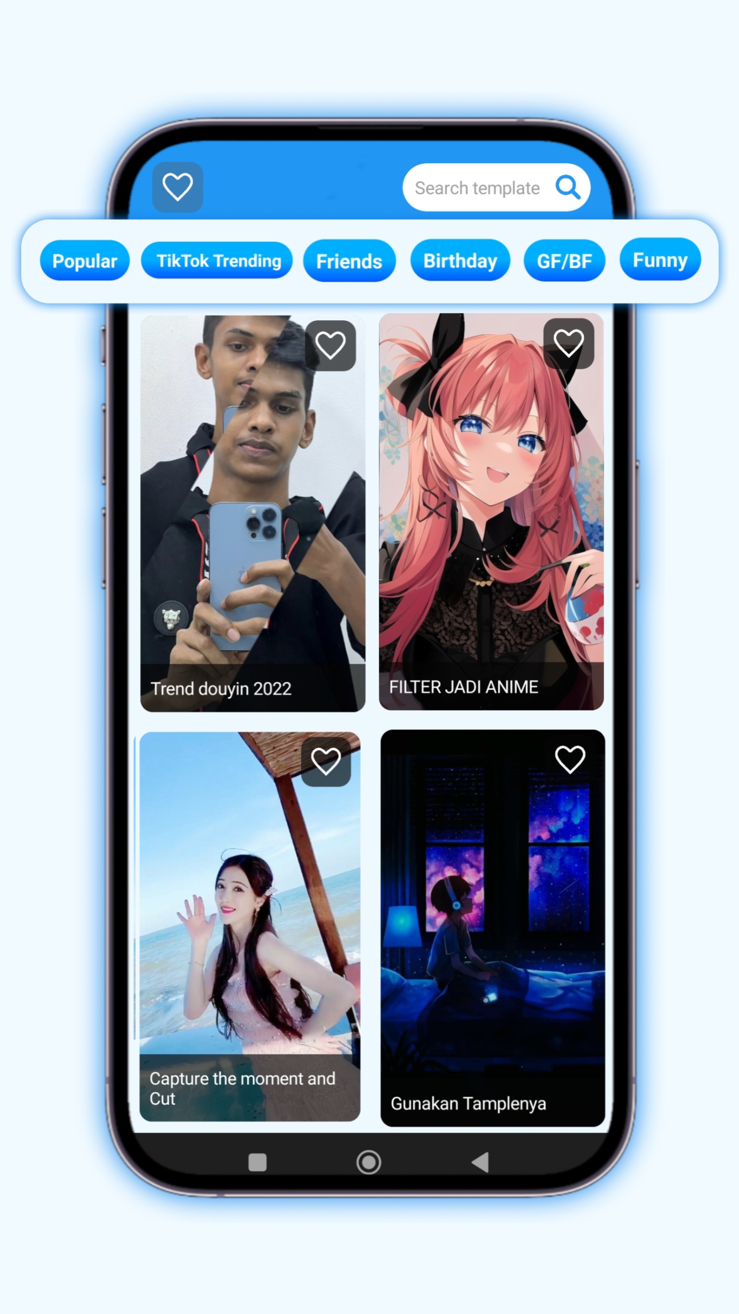 Você pode fazer edição de vídeo profissional usando CapCut Templates do Cap Template App. O CapCut é um editor de vídeo tudo-em-um gratuito e um aplicativo de criação de vídeo. Este é o aplicativo móvel de edição de vídeo mais popular. O aplicativo CapCut é muito fácil de usar. Aplicativo gratuito de edição de vídeo Tiktok mais popular. Portanto, usando o modelo do aplicativo Cap-Template, você pode fazer edição de vídeo com apenas um clique no aplicativo CapCut. Quando fazemos edição manual de vídeo com o CapCut, levamos muito tempo e muitos de nós não conseguimos editar vídeos. Portanto, as pessoas que não sabem editar vídeos e entendem menos sobre o Capcut podem facilmente editar vídeos com apenas um clique usando esses modelos do Capcut. Como resultado, você precisará de muito menos tempo e poderá editar vídeos de rótulos premium em menos tempo. Adicionamos regularmente o modelo CapCut a este aplicativo para que você possa editar seus vídeos usando o modelo Any CapCut como desejar. Destaque este aplicativo: 🔵 Modelo CapCut ilimitado. 🟡 Atualização diária Novo modelo. 🔵 Todos os modelos populares de tendências do Tiktok. 🟡 Modelo Premium Grátis. 🔵 Opção favorita. 🟡 Categorias de modelos úteis. 🔵 Tutorial e ajuda. Escolha o melhor modelo adequado para suas fotos/vídeos e crie um vídeo Joss em qualidade premium de graça! Edição de vídeo do modelo CapCut - isso mudará sua experiência no mundo da edição de vídeo. Nova experiência com edição de vídeo com um clique.
