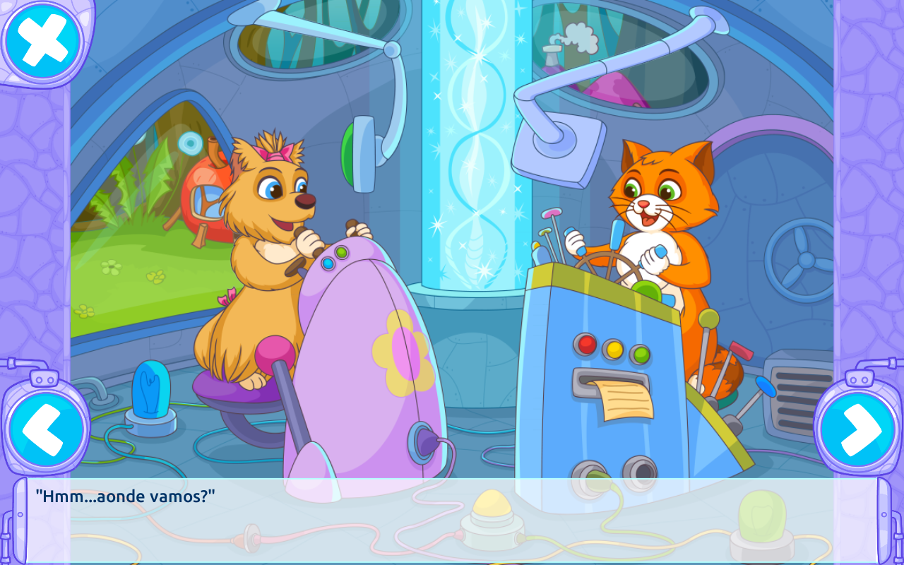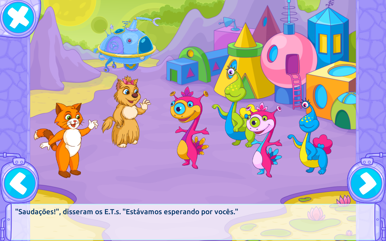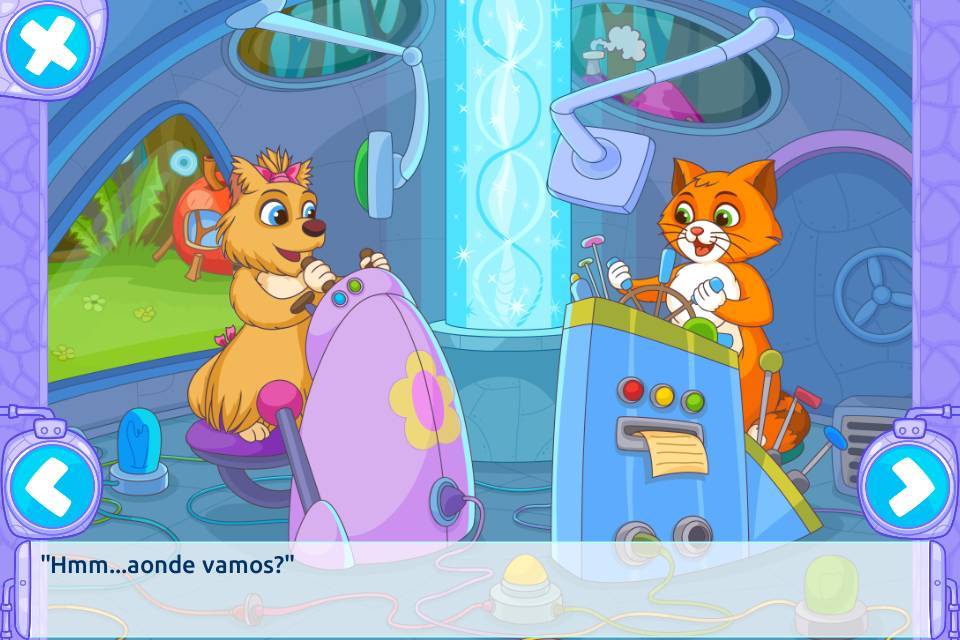 Uma história interativa com atividades educacionais e minijogos para crianças entre 6 e 9 anos de idade. Os dois personagens principais, Cão e Gato, procuram pela Fada perdida, e viajam por vários mundos em sua máquina mágica. Em suas viagens eles conhecem gnomos, elfos, dragões em um calabouço, E.T.s em uma planeta distante e mergulham nas profundezas do oceano. O enredo se alterna com atividades lógicas adequadas para crianças em idade pré-escolar e do Ensino Fundamental. Para auxiliar os personagens a progredir na história, a criança resolve atividades e treina sua atenção, memória, lógica, inteligência espacial entre outras funções cerebrais. A história consiste de 5 capítulos. Há também uma lista de 14 minijogos em separado, cada qual com 4 níveis de dificuldade. O aplicativo foi elaborado por uma psicóloga infantil e professora. atividades lógicas na história: Detectar um padrão à sequência; Labirintos; Quebra-cabeças; Adivinhar com qual tipo de papel cada envelope foi feito; Posicionar flores em um ramalhete de acordo com a regra proposta; Sudoku, e muito mais. atividades para treinar a atenção: Escolher a sombra correta do dragão; Encontrar duas estrelas-do-mar similares; Encontrar um peixe sem par; Escolher o fragmento correto; Contar todos os números em ordem crescente e decrescente; Encontrar todos os E.T.s, entre outras. atividades para treinar a memória: Memorizar a posição das estrelas no mapa antigo; Lembrar o que os amigos levaram consigo; Lembrar a fruta favorita de cada elfo, e muito mais. O aplicativo suporta 15 idiomas: inglês, russo, alemão, francês, espanhol, português, italiano, holandês, japonês, sueco, dinamarquês, norueguês, polonês, tcheco e turco.