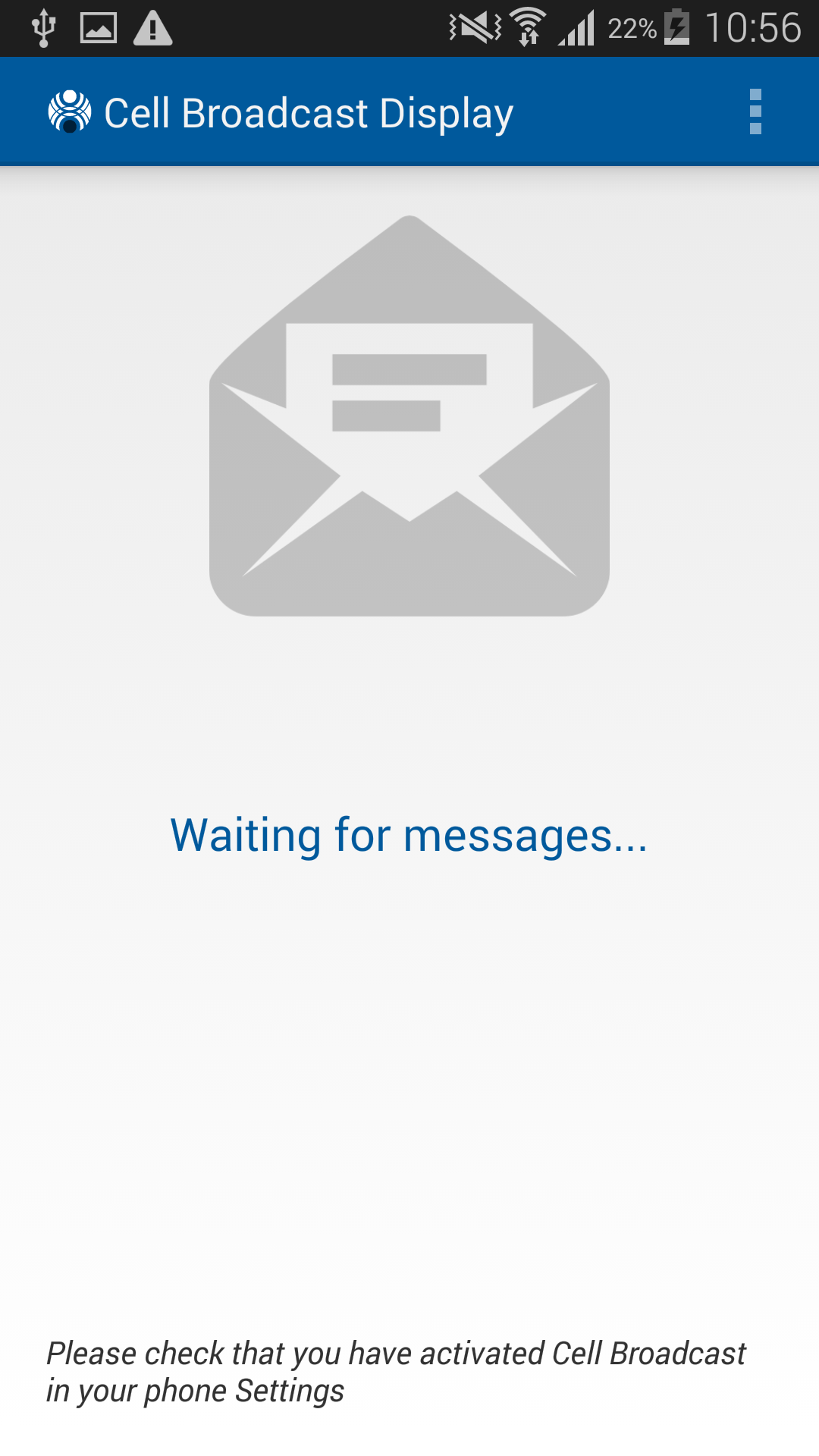 • Manufactures implement CB is various ways so there is no general configuration rule. Some Android phones do not offer CB at all. Cell Broadcast Display app will not work with these phones.