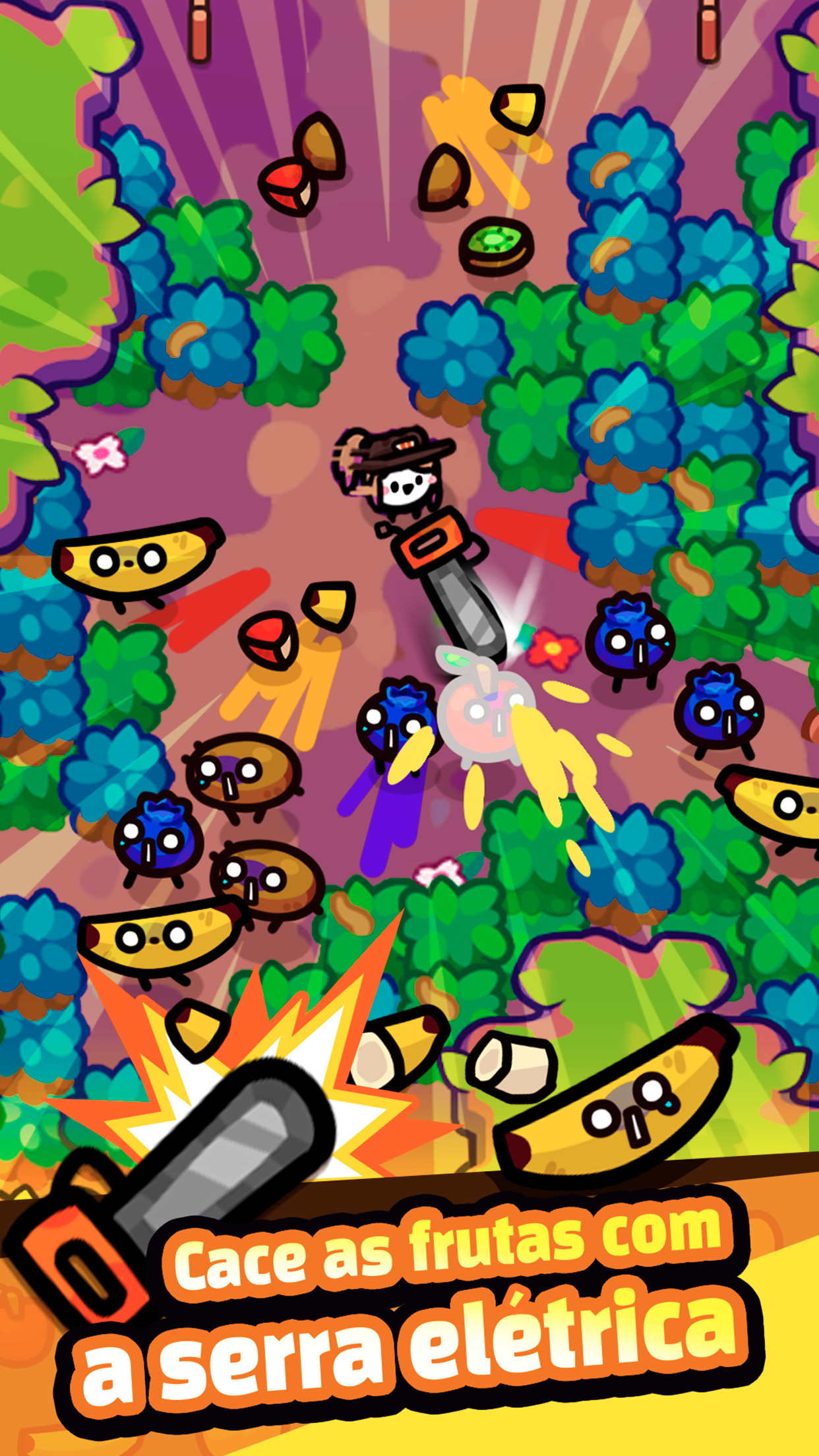► UM NEGÓCIO FRUTÍFERO 🥝 Imagine um jogo que é parte fruit ninja, parte fazendinha idle e parte império empresarial: parabéns, esse é Chainsaw Juice King! Pegue sua confiável motosserra e comece a fatiar e picar frutas para transformá-las em deliciosos sucos e smoothies e conseguir um belo lucro para o seu negócio. Além de cortar aquele monte de frutas como bananas e morangos, você também vai precisar gerenciar seus trabalhadores, manter os produtos em estoque e muito mais. Este jogo de simulação de mercadinho vai manter sua mente em estado de alerta do jeito mais fofo possível. Isso mesmo, incluímos gráficos adoráveis e os efeitos sonoros perfeitos para que você entre no clima da colheita feliz. Então pegue sua confiável motosserra e corra para sua fazenda de frutas, seus clientes estão esperando! ► LOUCURA TOTAL 🍌 🎯 Seu objetivo é simples : colher frutas para fazer suco que você pode vender no mercadinho. Mas ao iniciar sua jornada para se tornar um magnata das frutas, você logo perceberá que esse jogo de simulação de fazenda estilo arcade envolve muito mais coisas! Equilibre os gastos dos seus lucros, expanda sua base, contrate trabalhadores, corte frutas – e ei, cuidado com os grandalhões, ou eles vão te pegar! Este jogo cheio de emoção e aventura vai encantar você. 🍓 Gráficos suculentos : isso mesmo, prepare-se para os melhores efeitos sonoros e visuais de motosserra e respingos de frutas enquanto corta tudo na fazendinha! Apesar do método de colheita não convencional, os gráficos fofinhos são perfeitos para todas as idades. Você vai se focar na diversão, nas cores brilhantes e nos personagens fofos e nem terá tempo de se preocupar com o lado de simulação de mercadinho do jogo. 🧃 Construa seu império : não permita que nada fique em seu caminho até se tornar o maior magnata dos sucos! Domine a arte de administrar uma fazenda enquanto você equilibra todos os diferentes aspectos, mas não se preocupe, porque este jogo idle ainda é muito divertido. 🚜 Fazenda idle : parte da diversão é o aspecto idle do jogo. Mesmo quando não estiver jogando ativamente, seu personagem ainda estará coletando recursos e ganhando dinheiro. Tudo o que você precisa fazer é sentar, relaxar e ver a grana entrar... só tome cuidado com as melancias! 🍇 Frutas fantásticas : maçãs, laranjas, quivis e muito mais esperam por você! Apesar das caras fofinhas, você vai precisar ficar de olho nas versões maiores, porque esses carinhas podem não gostar que você colha e faça suco dos pequenos. Cronometre seu ataque para cortá-los em pedaços menores e colher as recompensas! VAMOS BOTAR A MÃO NA FRUTA 🍒 Coloque suas habilidades de ninja de frutas à prova enquanto busca se tornar o maior magnata dos sucos da terra! Colha frutas da sua fazenda neste jogo de aventura estilo arcade, então domine o lado comercial contratando trabalhadores e vendendo seus produtos acabados no supermercado por muito dinheiro. Com todo tipo de tarefas para concluir e novos lugares divertidos para explorar, o tédio nunca será um problema em Chainsaw Juice King. Experimente hoje mesmo para ver o quão frutífero seu negócio pode ser! Política de Privacidade: https://say.games/privacy-policy Termos de Uso: https://say.games/terms-of-use