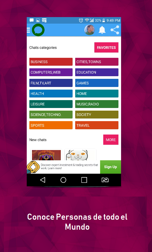Chat para conocer personas es ideal para aquellas personas que quieren conocer a nuevos amigos, entablar conversaciones por medio de chat, compartir audio y video. Chat para conocer personas te provee de varios beneficios, te provee un perfil gratuito para ti sin necesidad de registro, ademas de eso acceso a salas en las que encontraras a personas como tu buscando a alguien con quien conversar, podras intercambiar mensajes publicamente o privada, enviar imagenes y videos. QUe esperas , descargar chat para conocer personas y comienza a conocer personas hoy mismo. Icon made by Dave Gandy from Flaticon