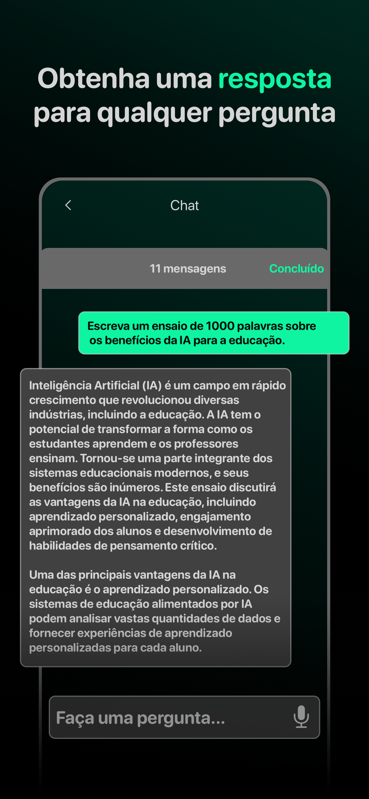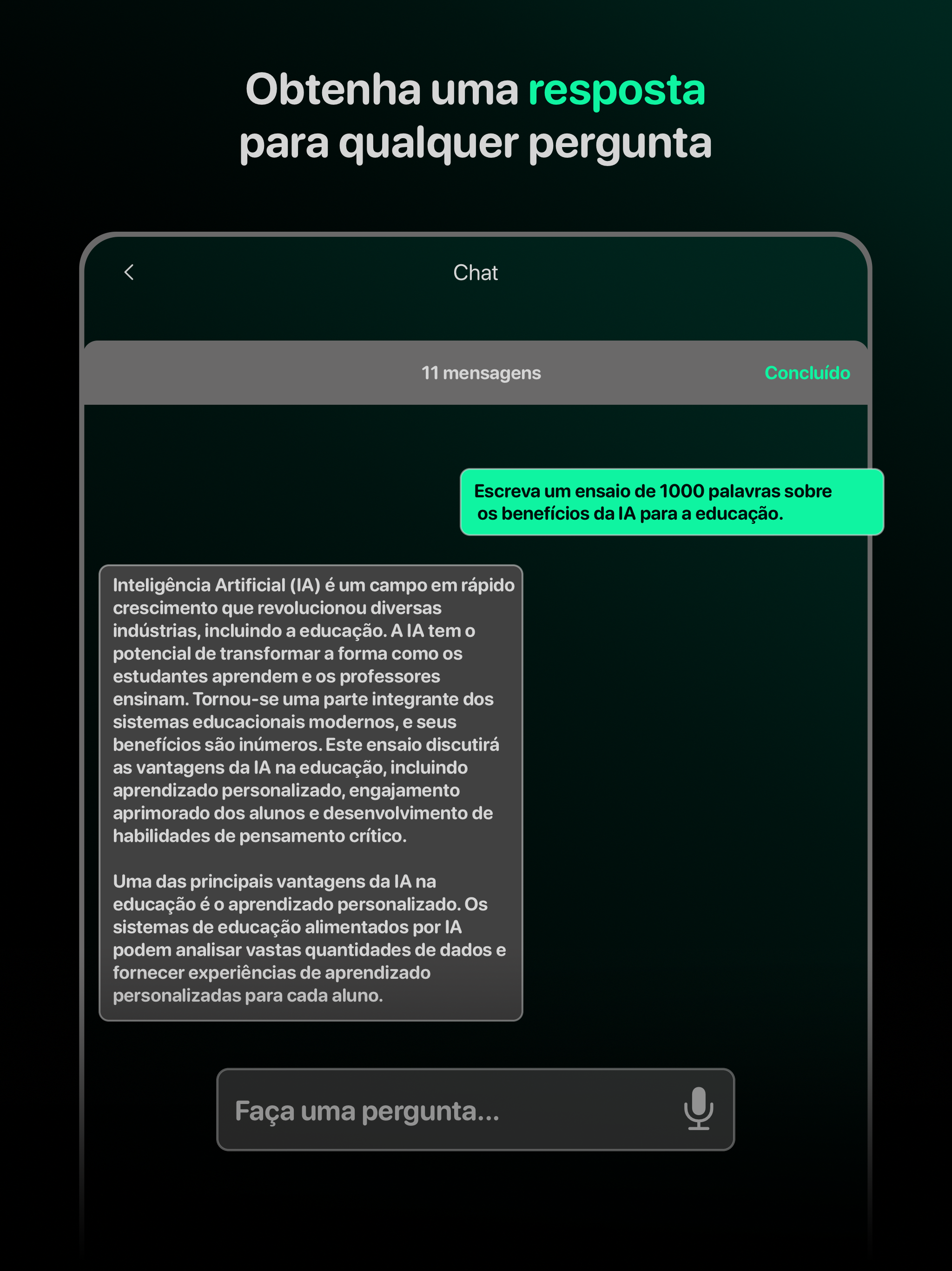 - Capacidade de ter diálogos (AI lembra todo o histórico de bate-papo)