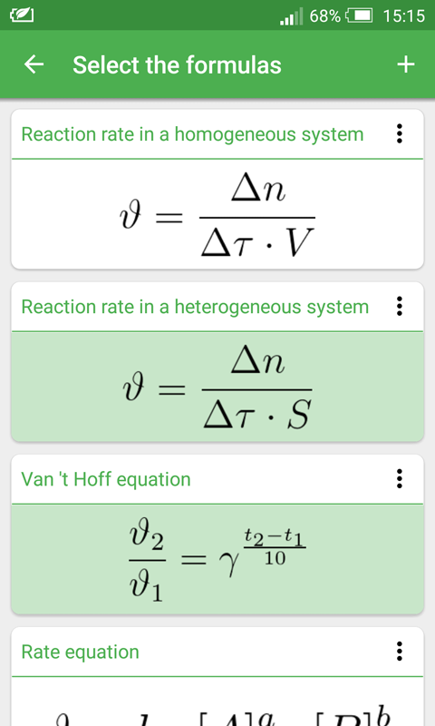 In the app (Chemical Formulas) you will find Chemical kinetics formulas,