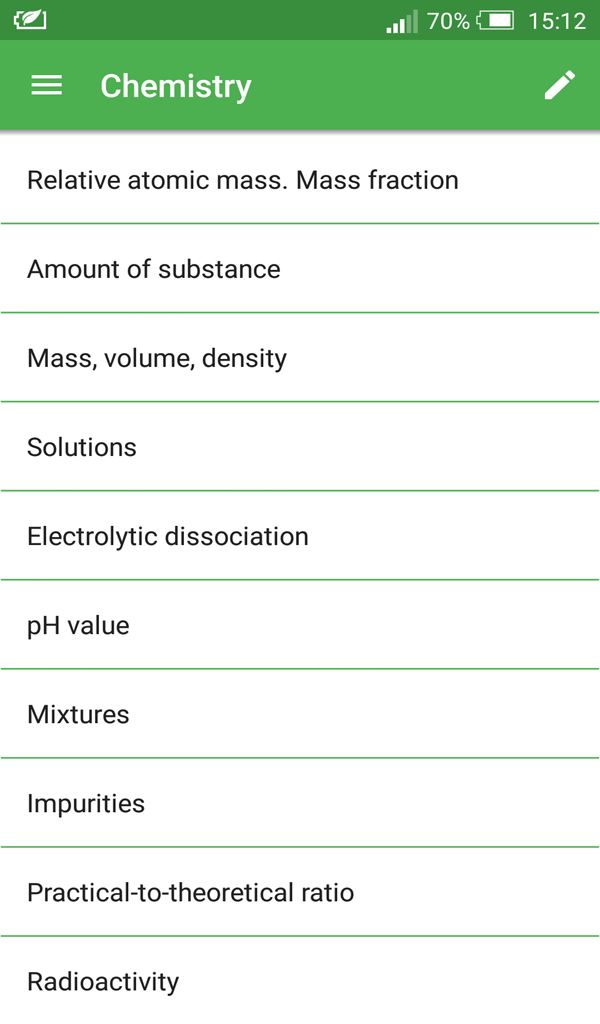 The App “Chemical Formulas” covers topics like: