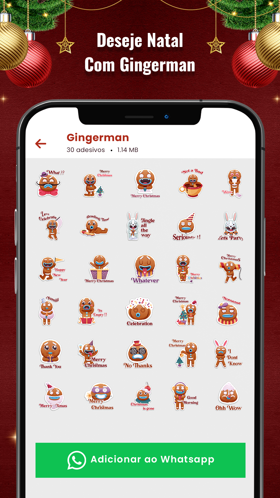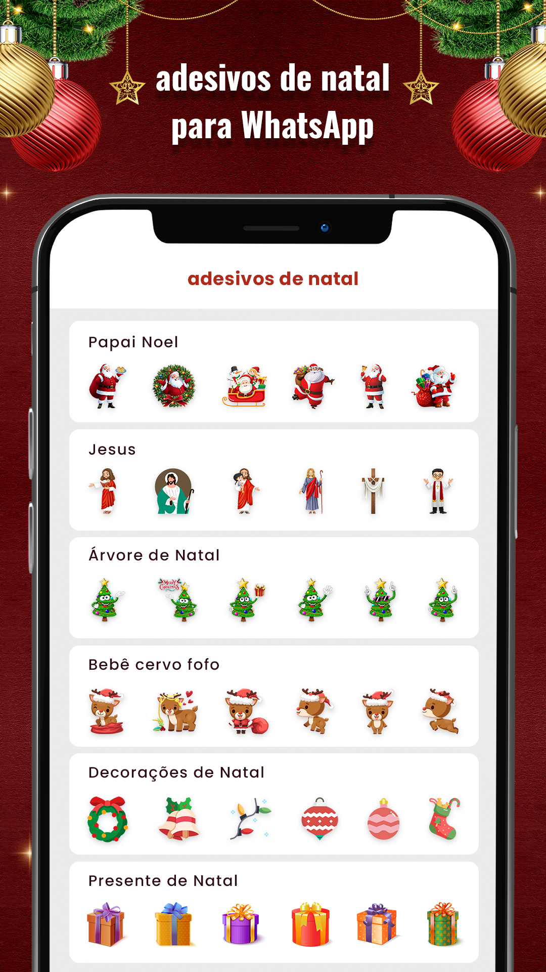 WAStickerApps de Natal (Christmas WAStickerApps) contém os seguintes adesivos