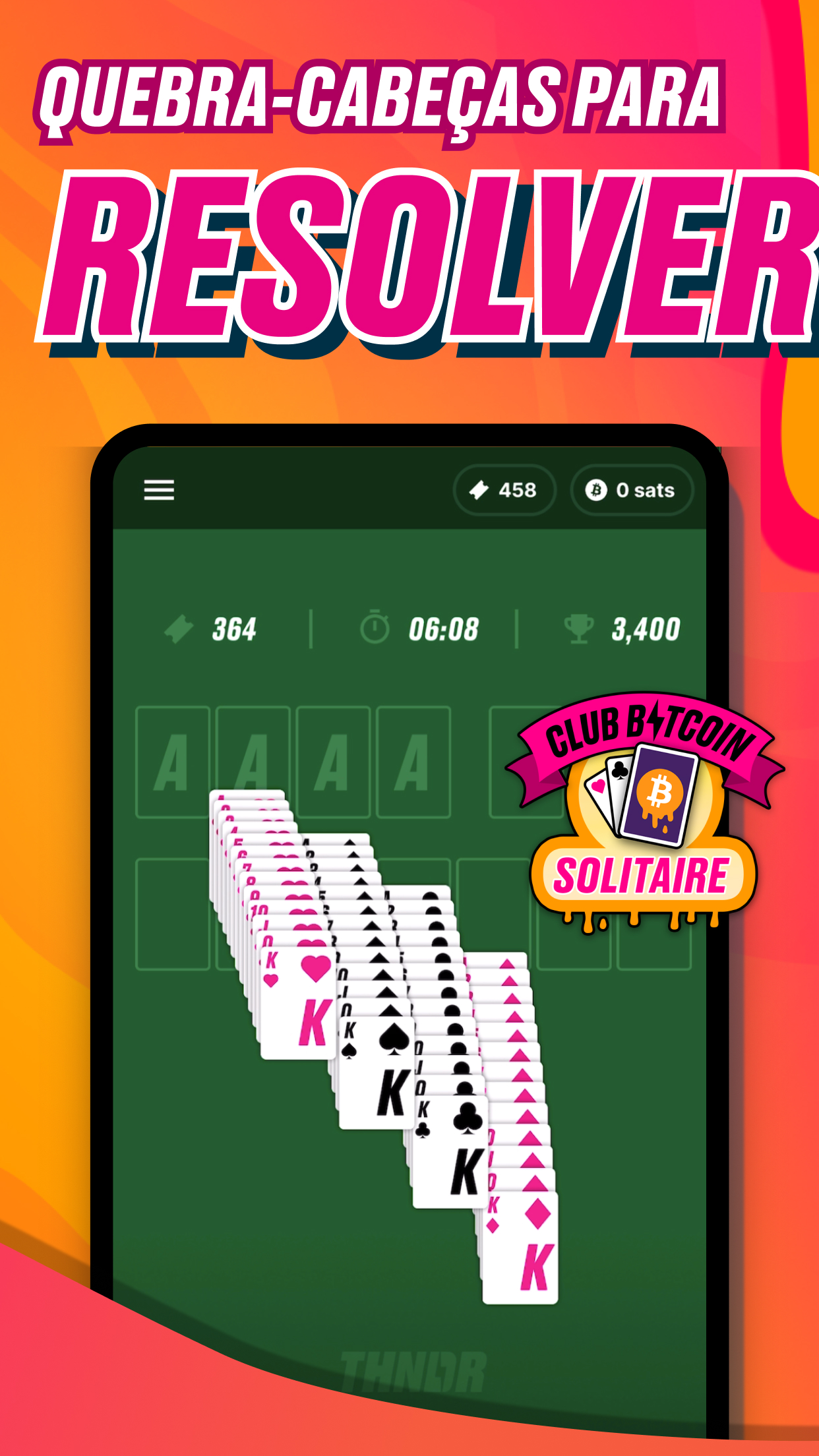 Você quer ganhar Bitcoin em jogos play-to-ganhar? Jogue o clássico Klondike Solitaire e junte-se gratuitamente para ganhar, livre para entrar no sorteio para ganhar um prêmio Bitcoin! 👑 Bitcoin Solitaire é um jogo de cartas simples, mas pertence ao gênero de jogos de criptografia ou jogos de bitcoin. Nesses jogos de cartas, você pode ganhar dinheiro real (p2e), btc ou outras moedas criptográficas e descontá-las. Você também pode trocar sats por NFT ou apenas dinheiro chato regular. Nós THNDR (Thunder Games) recomendamos fortemente que você fique com nosso amado Bitcoin real :) 💰 Até o momento, a THNDR pagou mais de 1.000.000 de prêmios com Satoshi (parte do Bitcoin) em todos os nossos Jogos Bitcoin! Você também pode começar a ganhar Bitcoin. Sim, mais de um milhão de vezes nossos jogadores reivindicam satoshi como recompensa por jogar nossos jogos de criptografia! Sim, bitcoin grátis, sem custo, sem truques neste jogo para ganhar jogos! Tudo de GRAÇA - sem depósitos 💲 - sem limites de saque de Bitcoin 📱 - sem período de espera ⏰ - sem exigências especiais 👌 Confira em nosso Twitter ou ganhe eventos de bitcoins! 💵 Até agora, a THNDR lançou 5 jogos para ganhar bitcoins onde os jogadores podem ganhar dinheiro real, bitcoins grátis apenas para a carteira de criptomoedas. Então é hora de definir sua carteira Bitcoin e se você enfrentar problemas, nossa incrível comunidade Bitcoin o ajudará a resolvê-lo. Apoiamos Wallet of Satoshi, Breez, Blue Wallet, Bitcoin Lightning Wallet, Zebedee e Zeus. Junte-se à nossa comunidade BTC! Estilo de vida, ideias revolucionárias e cartões chamativos! ⭐️ Mais uma vez, jogue nossos jogos para ganhar bitcoin, colete ingressos, reivindique bitcoin, converta seus sats em dólares e volte novamente! ⚡ - COMO JOGAR - Complete o máximo de jogos de paciência que puder. Pelas jogadas sábias, colete o máximo de pontos e bilhetes que puder. Os jogadores podem obter mais pontos se jogarem cartas uma após a outra. Teste-se e verifique quantos pontos você pode coletar. Os jogadores têm que mostrar suas habilidades e são julgados por suas pontuações máximas nas tabelas de classificação de estatísticas de bitcoin do clube em qualquer modo disponível. - COMO GANHAR BITCOINS - Este jogo de paciência contém um sorteio de prêmios no qual você pode ganhar bitcoins por meio de uma rifa, paga pela Lightning Network. Você deve ter 18 anos ou mais para entrar no sorteio e tem que jogar para ganhar a versão. Para entrar no sorteio do jogo BTC, você coleta THNDR Tickets. Cada um conta como uma entrada para o sorteio diário de Bitcoin no qual você pode ganhar o prêmio de bitcoin. Se você ganhar Bitcoin, poderá sacar krypto instantaneamente para um dos aplicativos de carteira Bitcoin suportados com suporte 'Lightning Network' no Google Play ou outros como Zebdee, Wallet of Satoshi, Breez, Blue Wallet, Bitcoin Lightning Wallet e Zeus. Nota: Os bilhetes THNDR são uma moeda virtual, não uma criptomoeda. Não têm valor monetário, não podem ser adquiridos nem transferíveis. O jogo não contém moeda criptográfica, carteira ou tecnologia relacionada. Todos os prêmios são pagos pela THNDR LTD ao vencedor, ao tocar no botão 'reivindicar todos' na tela do prêmio. A THNDR LTD enviará os ganhos do Bitcoin via The Lightning Network. Os termos e condições completos do sorteio estão aqui: https://thndr.games/terms OBSERVE QUE O GOOGLE INC NÃO É PATROCINADOR NEM ESTÁ ENVOLVIDO DE QUALQUER FORMA COM ESTE SORTEIO. O PROMOTOR DO SORTEIO É O ÚNICO RESPONSÁVEL POR FORNECER O PRÊMIO SE GANHADO POR UM PARTICIPANTE ELEGÍVEL. OS PRÊMIOS GANHADOS NÃO SÃO PRODUTOS DO GOOGLE, NEM ESTÃO RELACIONADOS AO GOOGLE DE QUALQUER FORMA. A RESPONSABILIDADE DE ORGANIZAR ESTE SORTEIO E DISTRIBUIR OS PRÊMIOS É DE RESPONSABILIDADES DA THNDR LTD.