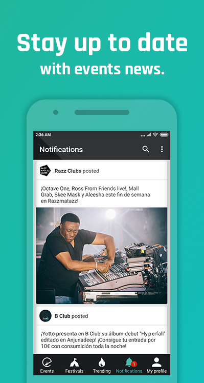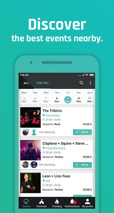 We connect music lovers to quality events, concerts and festivals. Choose your favorite music genres and start finding nearby quality artists, concerts, parties & festivals. Join the first community focused on the best upcoming music in town. Clubberize is Razzmatazz's official tech partner. Is live music your passion? Do you want to find the best events in Barcelona? Would you like to find out about a festival line up? Do you wanna know which Dj is mixing tonight at Razzmatazz? Are you looking for a nightclub? Whether you like quality band music or underground electronic music, Clubberize is your app! Find the best artists, clubs, events and underground festivals in Barcelona! 1- Just download the app 2- Choose your music genres 3- All you need to enjoy live music, Clubberize Community and all its benefits: Events and clubs: - Find the best nearby upcoming events for you. - Smart/custom recommendations according to your favorite music genres - Discover detailed information of clubs and events in Barcelona: music styles, dress code... - Check an event’s line-up by listening to the artists’ music previews - Buy tickets in advance and signup for free to guest lists. - Add events to your calendar and receive reminders of them. - Create your own agenda (events and festivals) and share it with your friends. - Follow your favorite clubs. - See who's attending to an event. - Meet other live music lovers: and discover their agendas and the music they like DJs and Artists: - Bio, music genres - Artist preview. - Upcoming events in which they will act. Festivals: -Upcoming festivals ordered by proximity. Festivals in Barcelona , Madrid... all around in Spain. -Lineup and programming: Take a look to all possible scenarios and combinations when scheduling the shows, avoid overlaps. Clubberize Xperience *: ♪ Keep the GPS activated on your smartphone DURING events and receive exclusive info from the artists, prizes, promos and discounts. ♪ Clubberize Xperience is the union between the real and the digital experience in the best music events: connect with your favorite artists, clubs and festivals during the event. For the first time, your loyalty to a club will be rewarded. Get exclusive benefits and advantages from your favorite clubs becoming a premium member in our app. * Only available for some venues and festivals, we work to bring this technology to more events and venues. There are more than 70 music genres, so you will only receive custom recommendations according to your music preferences (in Clubberize app you will find from hardcore events, clubs or rock concerts, electronic music DJs - clubbing app - and even artists of reggae, rap or hip hop). In Clubberize app you will find all within from the hardest and most upbeat genres to the most calm and chill ones. Techno, Reggae, Hardcore, Deep House, Hip Hop, Trap, Rock, Metal, Indie... Available in Barcelona, coming soon to other cities. We update the app constantly, if you have any doubt or proposal of any event, club or festival, do not hesitate to leave us a comment;). Never miss a beat & follow us on: www.clubberize.com (we have a blog!) Facebook/clubberize Twitter: @clubberize Instagram/clubberize