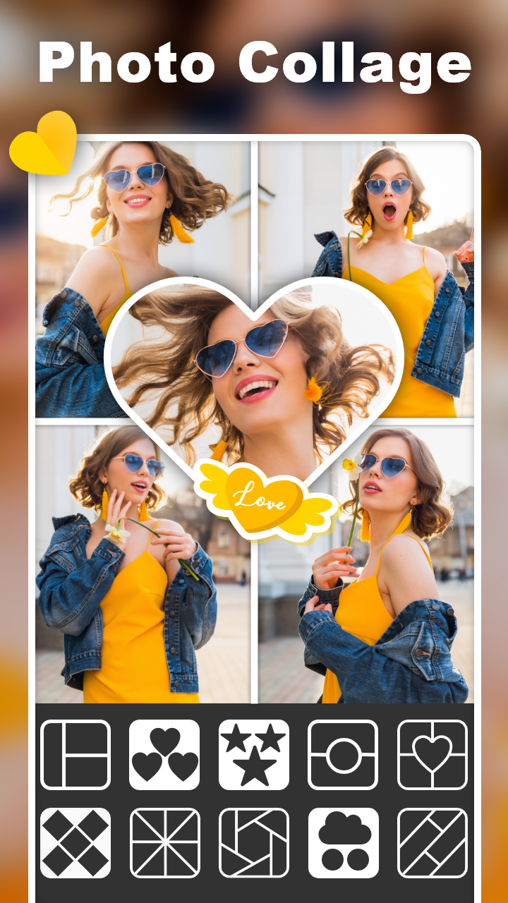 O Criador de colagens ajuda você a selecionar várias fotos e convertê-las na melhor colagem de fotos. O aplicativo Editor de fotos tem Layout de grade que permite aos usuários organizar várias imagens em um padrão de grade para criar colagens. O criador de colagens oferece mais de 100 molduras para fotos, layouts e muito mais. Este fabricante de colagem é melhor para você fazer colagem de fotos e compartilhá-lo com sua família e amigos.