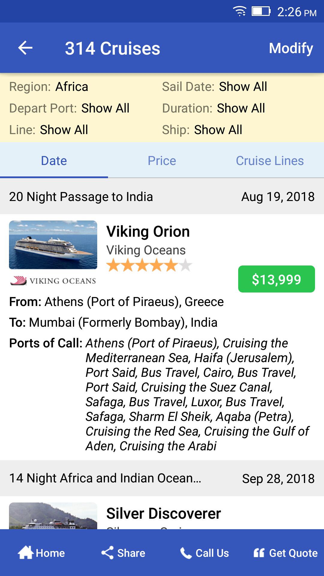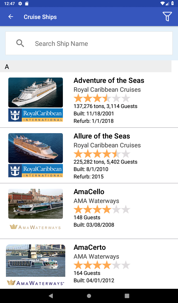 Por quase 10 anos, Cruzeiro do Finder ™ por iCruise.com tem sido um dos aplicativos cruzeiro de férias de planejamento mais abrangente na indústria de viagens. Com mais de 1 milhão de downloads, este premiado aplicativo de cruzeiro fornece informações cruzeiro detalhadas sobre 40 linhas de cruzeiro diferentes, mais de 350 navios, incluindo fotos cabines e planos de convés, 25 destinos, e 32,000+ itinerários completos com mapas de rotas. O melhor de tudo, este é um aplicativo gratuito! Assine nossa newsletter e-mail a partir do seu iPhone e receber um voucher para até US $ 50 fora de seu próximo cruzeiro de férias com iCruise.com ***** Travel Weekly Magellan Award Winner para Apps Los Angeles jornal: "Este aplicativo deve ter tem itinerários para cada grande linha de cruzeiro, procura por ofertas de cruzeiros quentes e inclui fotos, planos de convés, etc., para mais de 220 navios de cruzeiro" ***** características do Finder Cruise ™ incluem: • Acompanhamento de Cruise com Alteração de preço Alertas • Cruise Finder Busca Rápida Ferramentas • 40 linhas de cruzeiro • 350 + navios de cruzeiro • 22,000+ Itinerários com descrições dia-a-dia e mapas de rotas • preços online ao vivo, disponibilidade e reserva • Port Fotos • Descrições Cabine e Fotos • Planos de plataforma clicáveis • Ofertas de cruzeiros quente - Last Minute, Senior e férias Ofertas • Calendários Cruise • Meus Favoritos - Save Your Navios favorito, Cruise Lines, e Itinerários • instruções Port, estacionamento e Mapas • Tempo Port • Notícias Cruise • Compartilhar via e-mail, Facebook e Twitter • E mais Destaques: Localizador Cruise ™ A nossa busca de cruzeiro inteligente permite-lhe encontrar um cruzeiro por Destino, Data de Partida, Partida Porto, Cruise Line e navio de cruzeiros. . . com cada seleção, oferecendo-lhe um número em tempo real de cruzeiros que correspondem à sua solicitação. Itinerários incluem: • Alasca • Bahamas • Bermuda • Caribbean • Europa • Havaí • Mediterrâneo • Canal do Panamá • América do Sul • Pacífico Sul • E mais Linhas de cruzeiro Pesquisa 40 linhas de cruzeiro ordem alfabética ou por tipo. . . linhas contemporâneas, o Premium, Deluxe, luxo e cruzeiros Niche / Especialidade. Ver seus navios, um breve perfil e calendários de vela. Cruise Lines incluem: • Azamara Club Cruises • Carnival Cruise Line • Cruzeiros celebridades • Costa Cruzeiros • Linha de Cunard • Holland America • Princesa • P & O e P & O Australia • Norwegian Cruise Line • Royal Caribbean • Regent Seven Seas Cruises • Colecção Yacht Carlton Ritz • Cruzeiros Seabourn • Cruzeiros Silversea • E mais Cruseiros Classificar 350 navios de cruzeiro em ordem alfabética, pela linha de cruzeiro, por tamanho e classificação de navios. Então Opinião do navio Estatísticas, Itinerários, Cabine fotos e descrições e planos de plataforma. Navios mais novos incluem: • Bliss norueguês e Encore norueguês • Symphony of the Seas & Harmony of the Seas • Borda da celebridade • Horizon Carnaval • Colecção Yacht Carlton Ritz • Ovation Seabourn • Crystal River Cruises • E 300+ mais