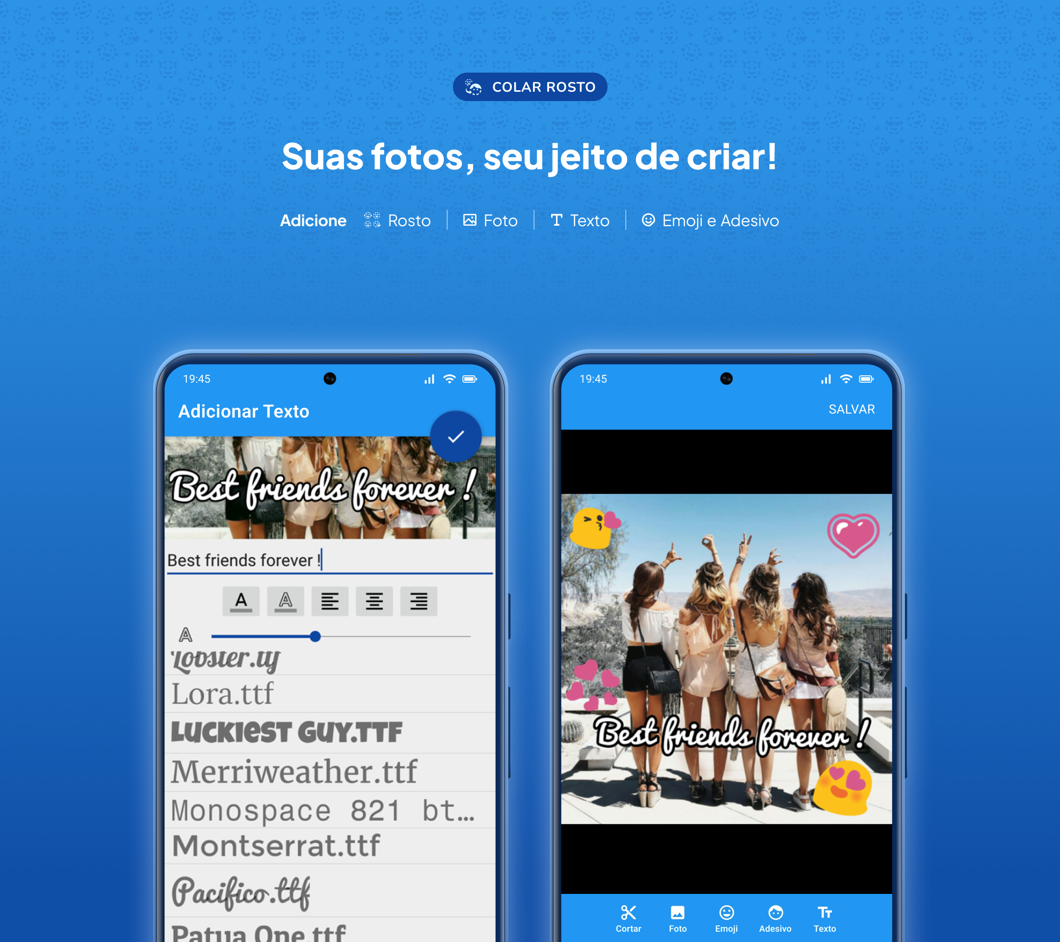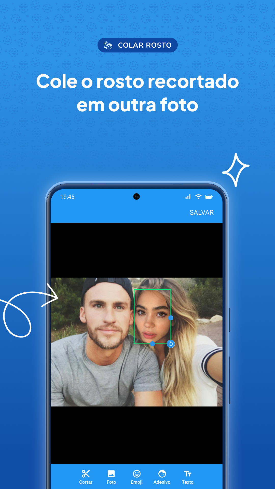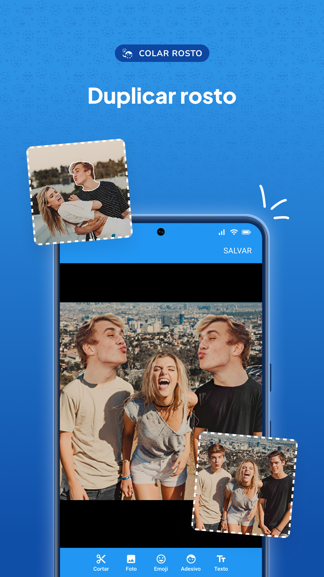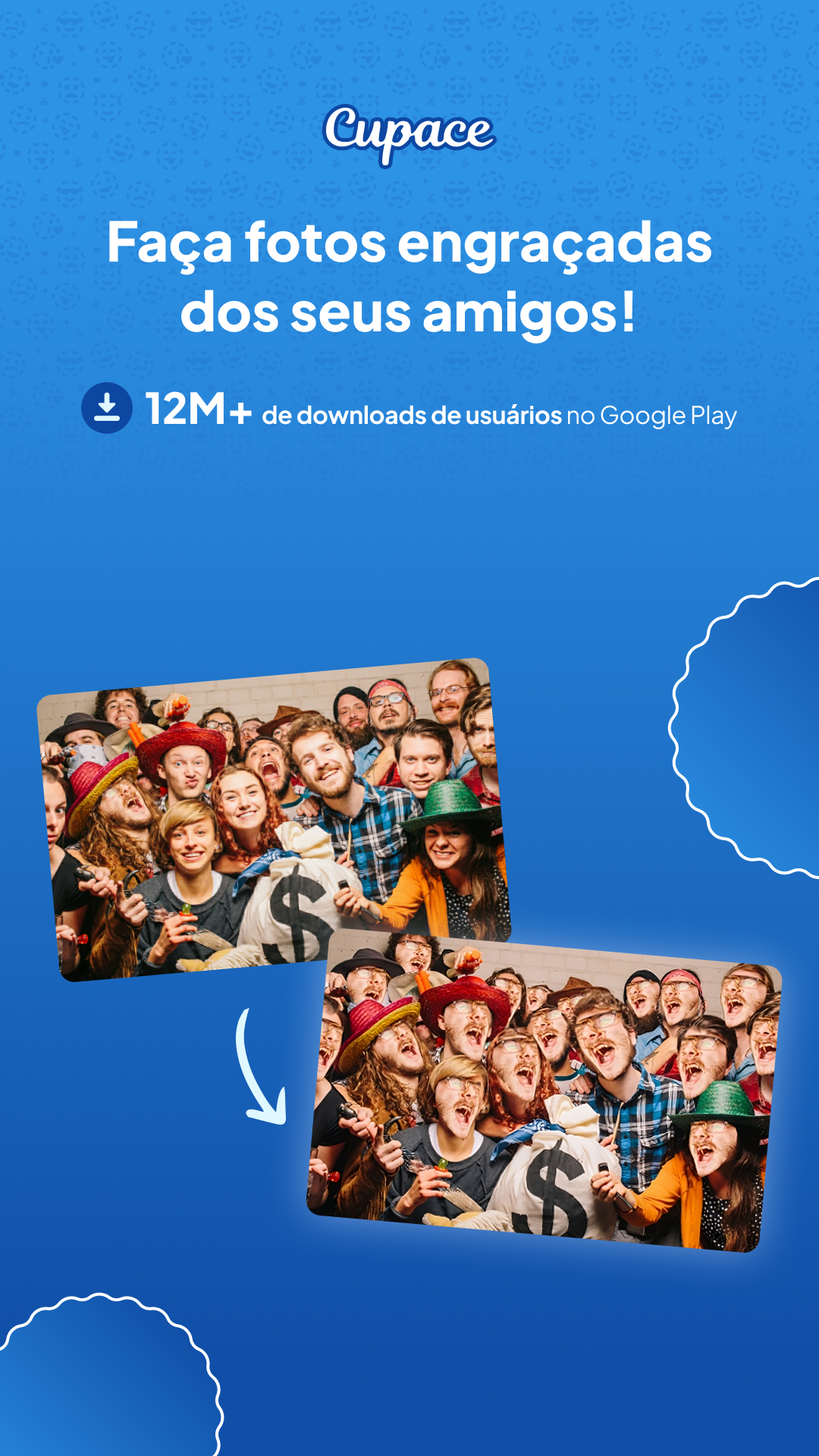 Cupace – um simples editor de fotos para cortar e colar a cara numa foto. Podes criar memes, fotos divertidas e trocar as caras numa foto ao Cortar a cara ou parte de uma foto e colar noutra. Podes ainda adicionar texto e autocolantes às fotos. Funcionalidades : Cortar Cara 1. Modo Cortar : Corta a cara fazendo um desenho numa cara em fotografias com suporte para lupa. 2. Modo Zoom : Aproxima a cara que pretendes cortar na fotografia. Galeria de Caras Todas as caras que recortaste serão gravadas na Galeria de Caras, e podes utilizá-las várias vezes em várias fotografias sem teres de as recortar novamente a partir da fotografia original. Colar Cara 1. Caras : Todas as caras na Galeria de Caras serão mostradas aqui. Precisas apenas de tocar para colar as respetivas fotos. E podes adicionar a mesma cara várias vezes na mesma foto. 2. Foto : podes eventualmente adicionar uma foto dentro de uma foto. 3. Autocolante : Existem muitos autocolantes / emoji’s que podes adicionar à tua foto. 4. Texto : Adiciona texto à tua foto. Por ultimo, podes gravar a a tua foto e partilhá-la nas redes sociais como Instagram, Path, Facebook, LINE, Whatsapp, Telegram, SnapChat, WeeChat, BBM, 9gag, etc. ------------------------------- English Description : Cupace - a simple photo editor app to cut and paste face in a photo. You can create meme, funny photos and swap faces in a photo by Cut a face or a part of a photos and paste it to another photo. And you can add text and stickers to photos. Features : Cut Face 1. Cut mode : Cut a face by drawing a path on a face in a photos with magnifying glass support. 2. Zoom mode : Zoom in the face you want to cut in a photos. Face Gallery All of the face that you has been cropped will be saved in Face Gallery, and you can re-use it on multiple photos without need to cut it again from its original photo. Paste Face 1. Faces : All face in the Face Gallery will be shown here. You just need to tap it to paste to the current photos. And you can add same face multiple times in a photo. 2. Photo : you event can add a photo inside a photo. 3. Sticker : There are many sticker / emoji's that you can add to your photo. 4. Text : Add text to your photo. Finally, you can save your photo and share it to social media like Instagram, Path, Facebook, LINE, Whatsapp, Telegram, SnapChat, WeeChat, BBM, 9gag, etc.