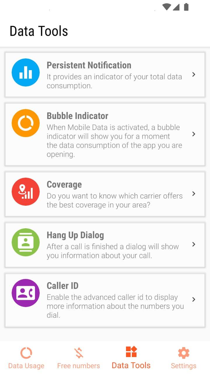 Uso de Dados.✔ Verifique o consumo de dados do seu plano. Ajuda a monitorar quais aplicativos usam mais dados. Você também pode excluir apps ilimitados do consumo total de dados e definir limites por aplicativo quando seu plano lhe conceder, por exemplo, 1 GB para o YouTube.