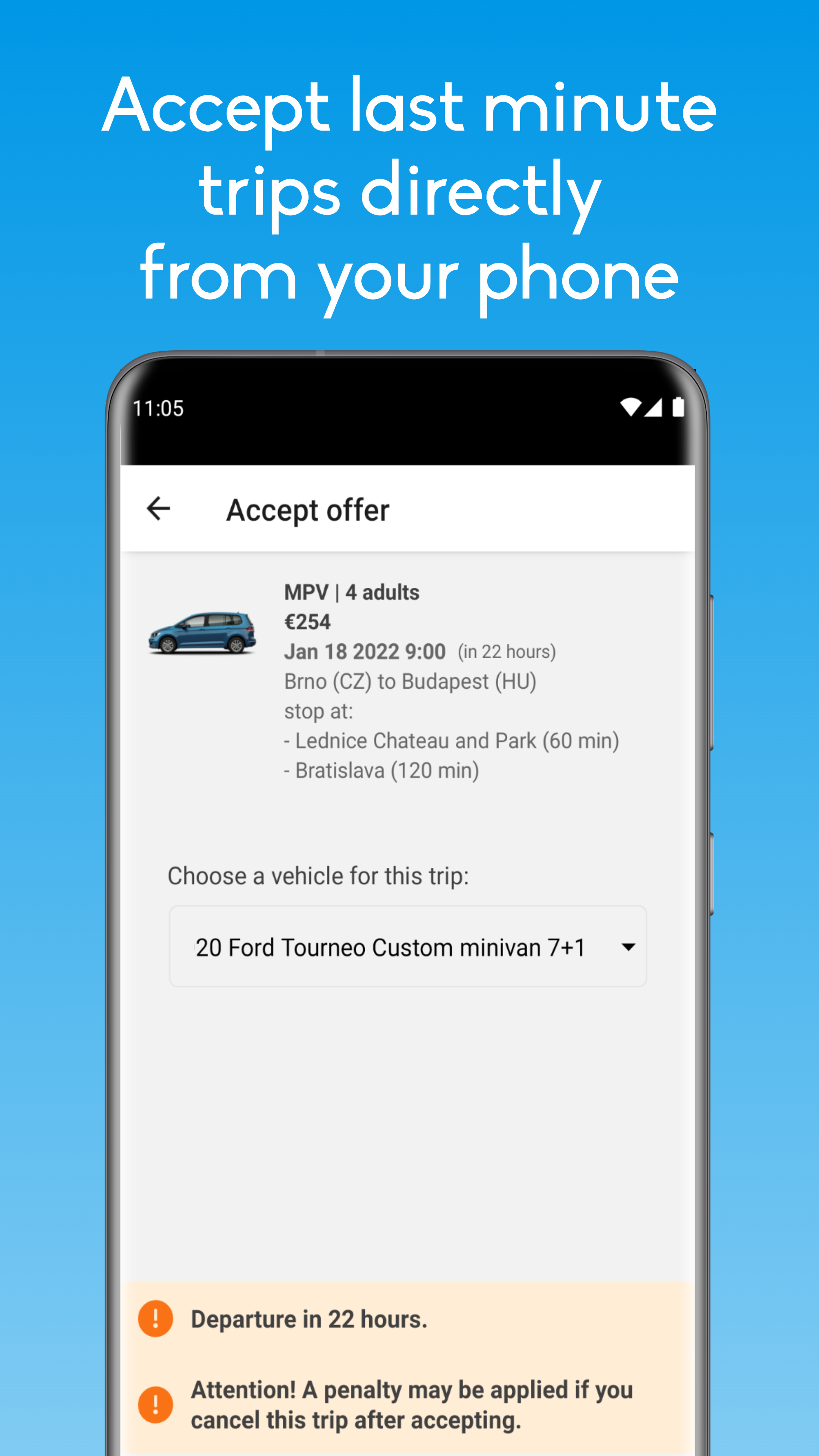 Aplicativo interno para motoristas Daytrip para aceitar e gerenciar viagens.