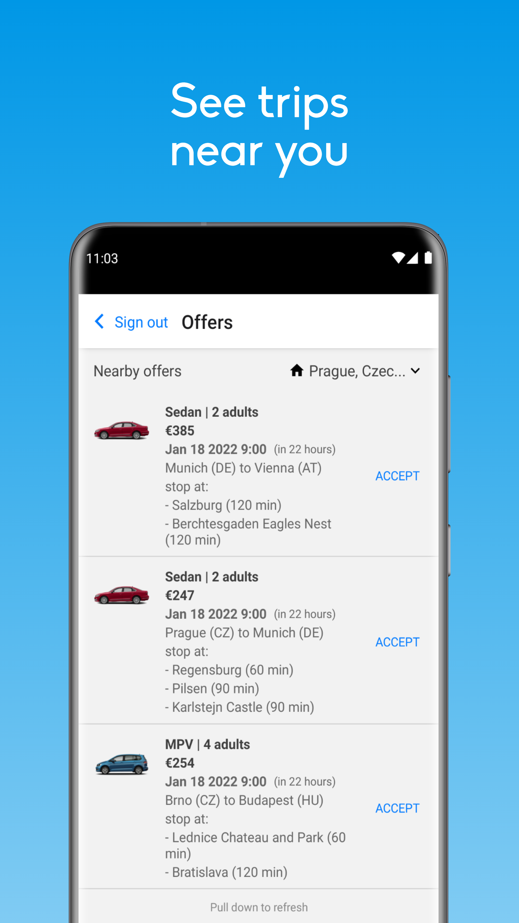 Receba ofertas de viagem de última hora e rastreamento de viagem.
