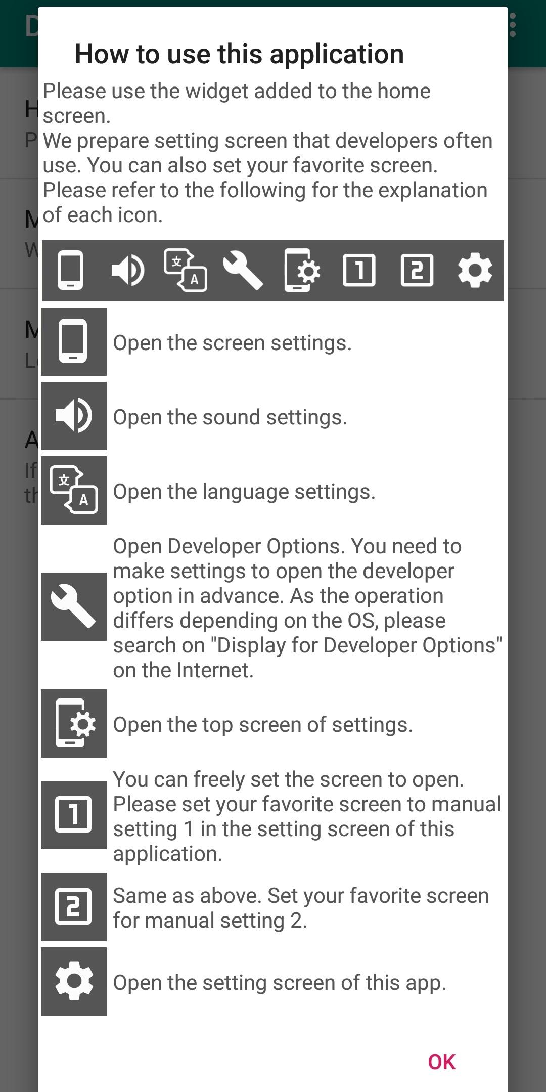 Developer Widget-Shortcut widget to each setting-