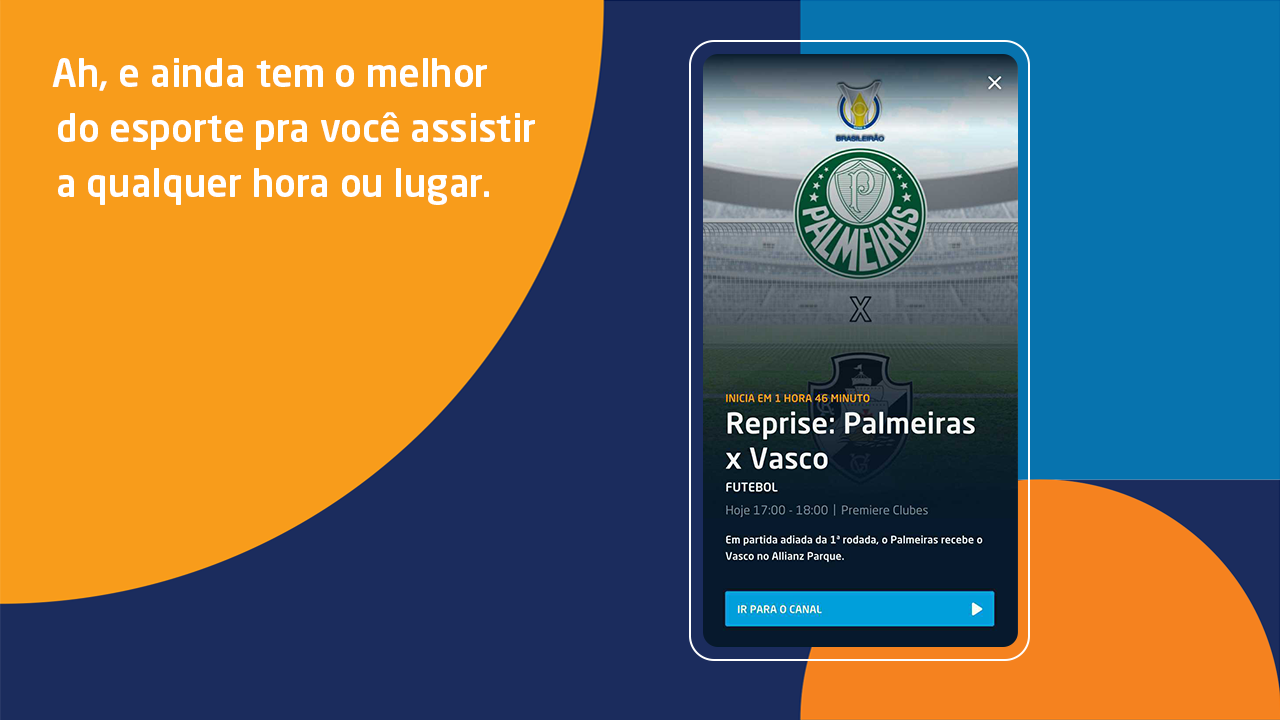 Se você é fã de esportes, pode curtir ESPN, Fox Sports e SporTV à vontade. As crianças se divertem com Cartoon Network, Discovery Kids, Disney Channel e Nickelodeon. Tem muito filme com HBO, AXN, TNT e Sony. As notícias do Brasil e do mundo estão na Band News, CNN Brasil e Globo News. E, ainda, tem os canais abertos, como Globo, Record, SBT, Band e RedeTV!.