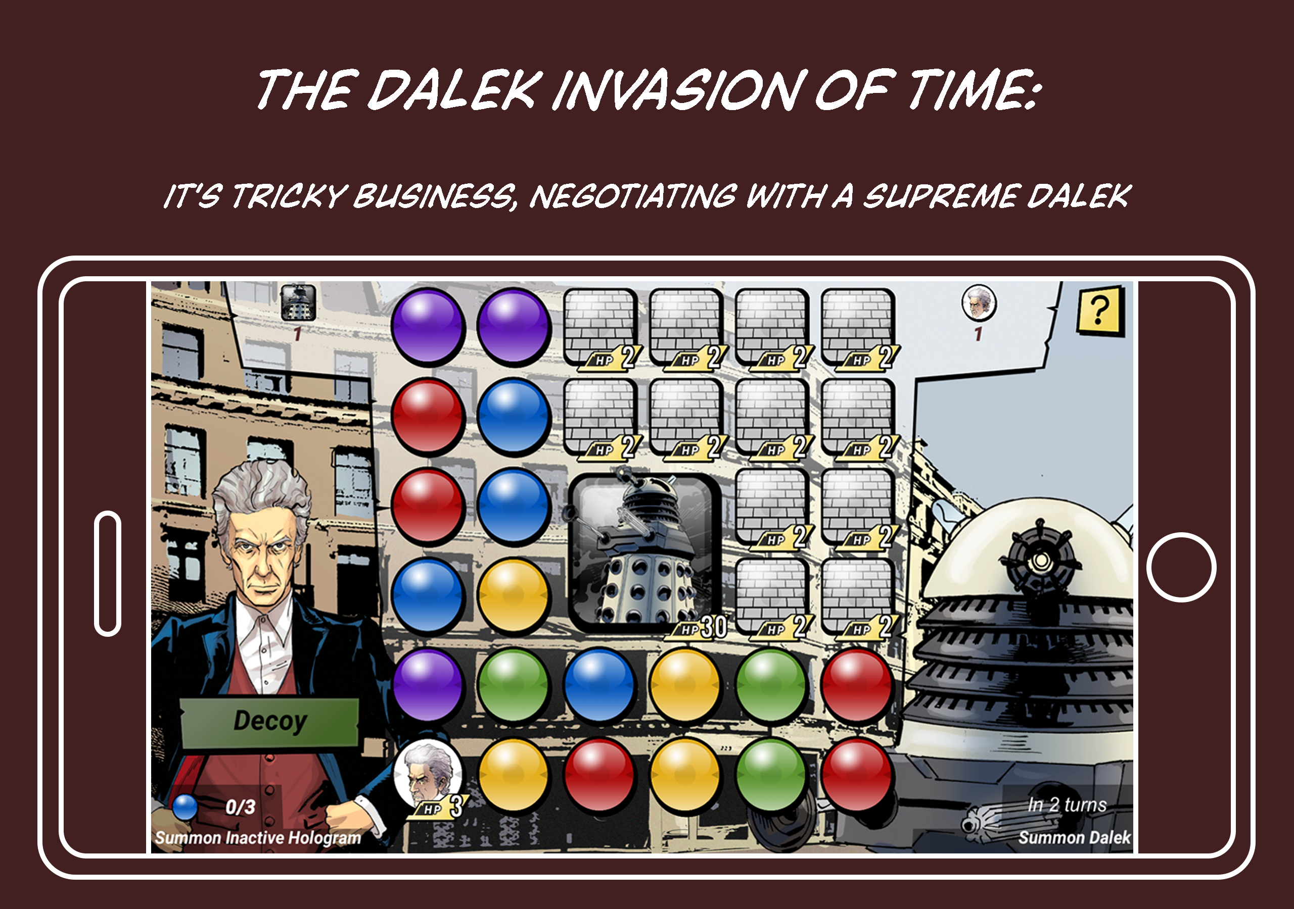 Now with a new lower price point per story! Doctor Who Infinity is an exciting new game platform, featuring brand-new adventures for the Doctor and his companions. Each one is written by an established Doctor Who writer and focuses on previous eras of the Time Lord and companions. Featuring unique puzzle game play changes from level to level with increasing complexity, where characters like the Doctor, Missy, Jo Grant appear on the board, as do opponents like Daleks, bombs, vehicles and time vortexes. You have never played anything like this before! The game design is an innovation on the award-winning puzzle mechanic used in Doctor Who: Legacy with the mechanics tightly intertwined helping to immerse you in the story. FREE download of the game allows you to play the introductory section of all stories released on the platform.- Each story features a different Doctor from a different era of the show, including both modern and classic Doctors, companions, monsters and brand new characters. Brought to life by Michelle Gomez, Ingrid Oliver, Katy Manning, Bella Ramsey, Celyn Jones, Steffan Rhodri, Nick Briggs and other incredible actors, as part of an amazing audio experience overseen by the award-winning audio director of Monument Valley, Stafford Bawler.- Each story is written by major Doctor Who author: George Mann, Gary Russell, Scott Handcock, Jac Rayner and Mike Collins. Comic book artists Mike Collins, David Roach, Neil Edwards, Dylan Teague, Kris Carter, John-Paul Bove, Emma Vieceli, Patrick Goddard bring these stories richly to life. PLEASE NOTE that this game is aimed at the adult Doctor Who fan, comfortable with mature, dramatic themes.