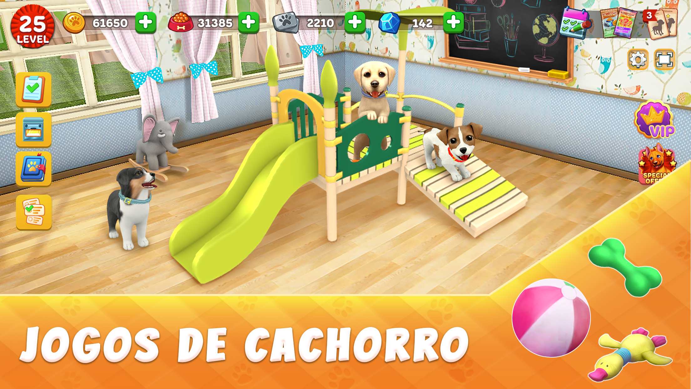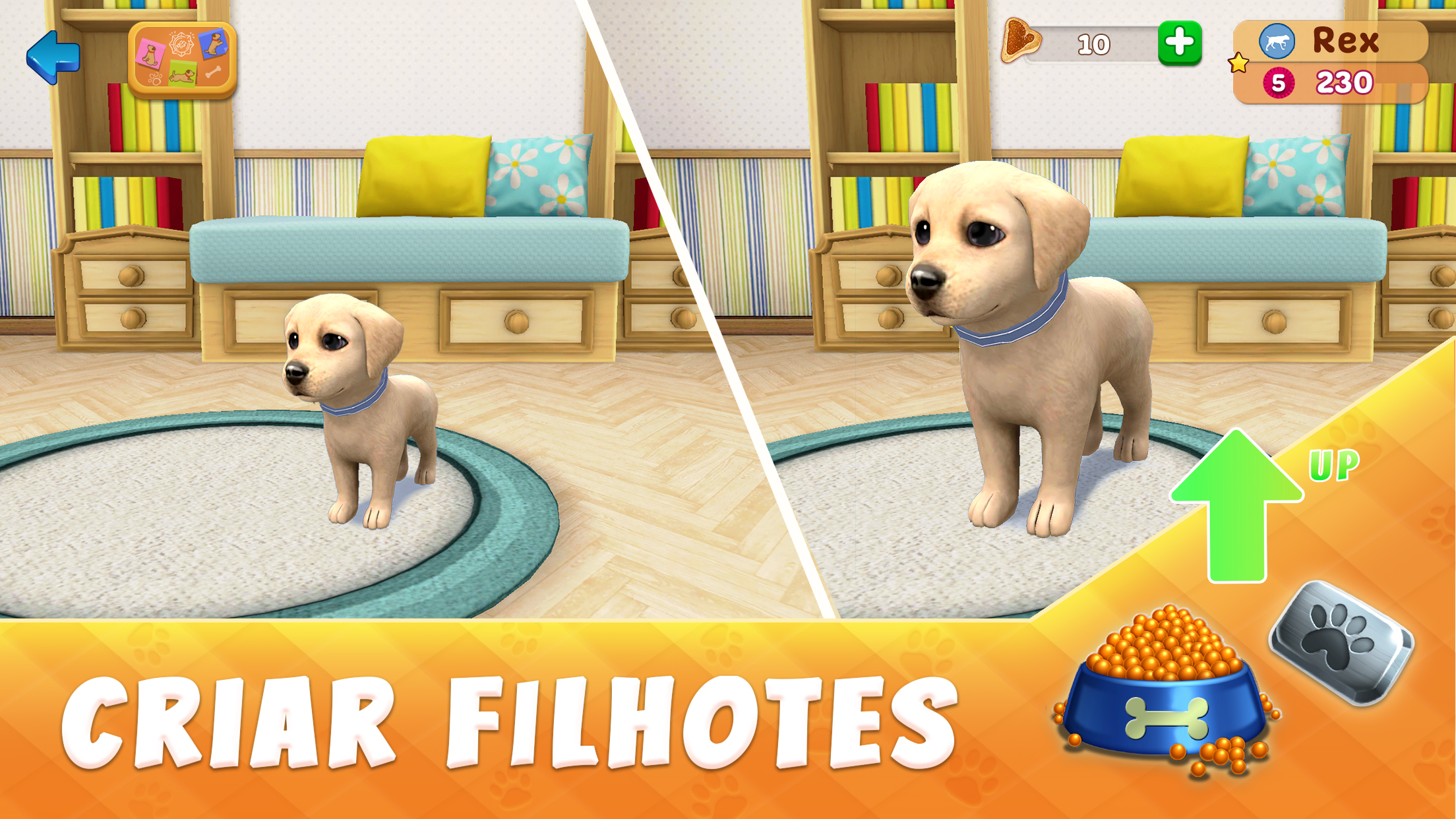 Você vai colecionar cães, treiná-los para para passar um nível e enviá-los para missões por prêmios incríveis! Se você sempre quis adotar um animal de estimação, brincar com cachorrinhos, estava interessado em resgatar animais de estimação, então este é um dos melhores jogos grátis de animais para você. Com a habilidade de personalizar os quartos onde os seus cães vão viver, nós colocamos um grande esforço para garantir que você se sinta apegado aos seus cães, igual com os verdadeiros.