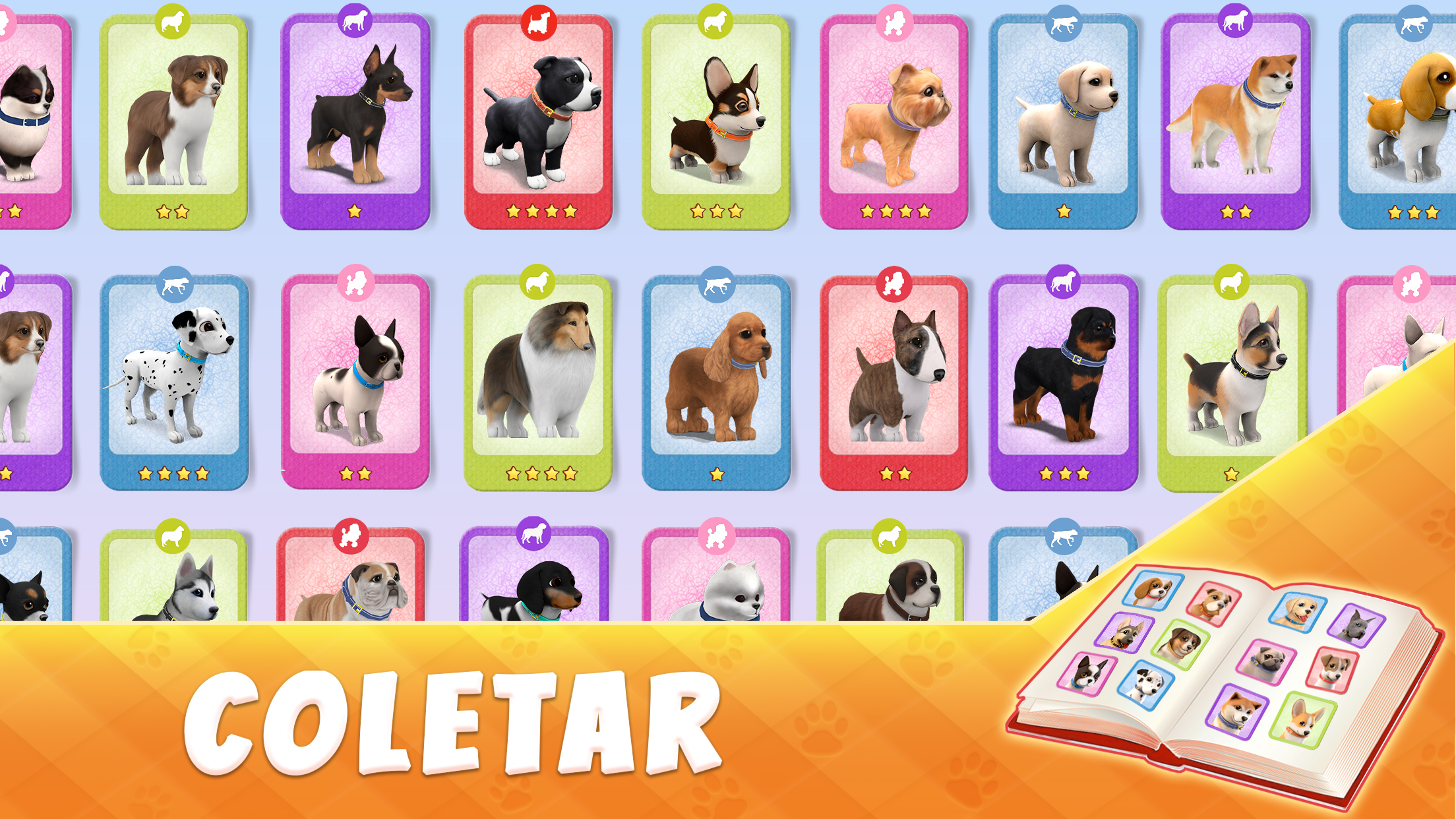 Cada cão tem um caráter e comportamento único, por isso os jogadores vão sempre identificar o seu "Sonolento" do "Nervoso"! Nas próximas atualizações, traremos mais cartões para cachorros e filhotes fofos para cuidar de novas raças.