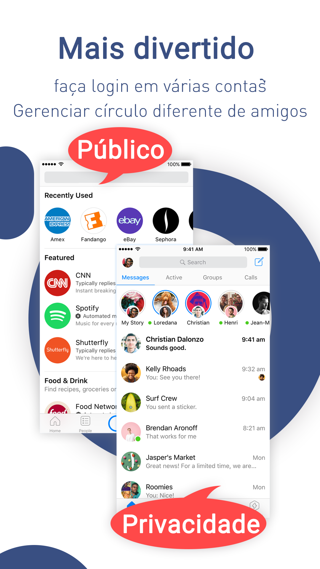 • Execute duas ou mais contas ao mesmo tempo e alterne rapidamente entre várias contas para gerenciar efetivamente diferentes contas.