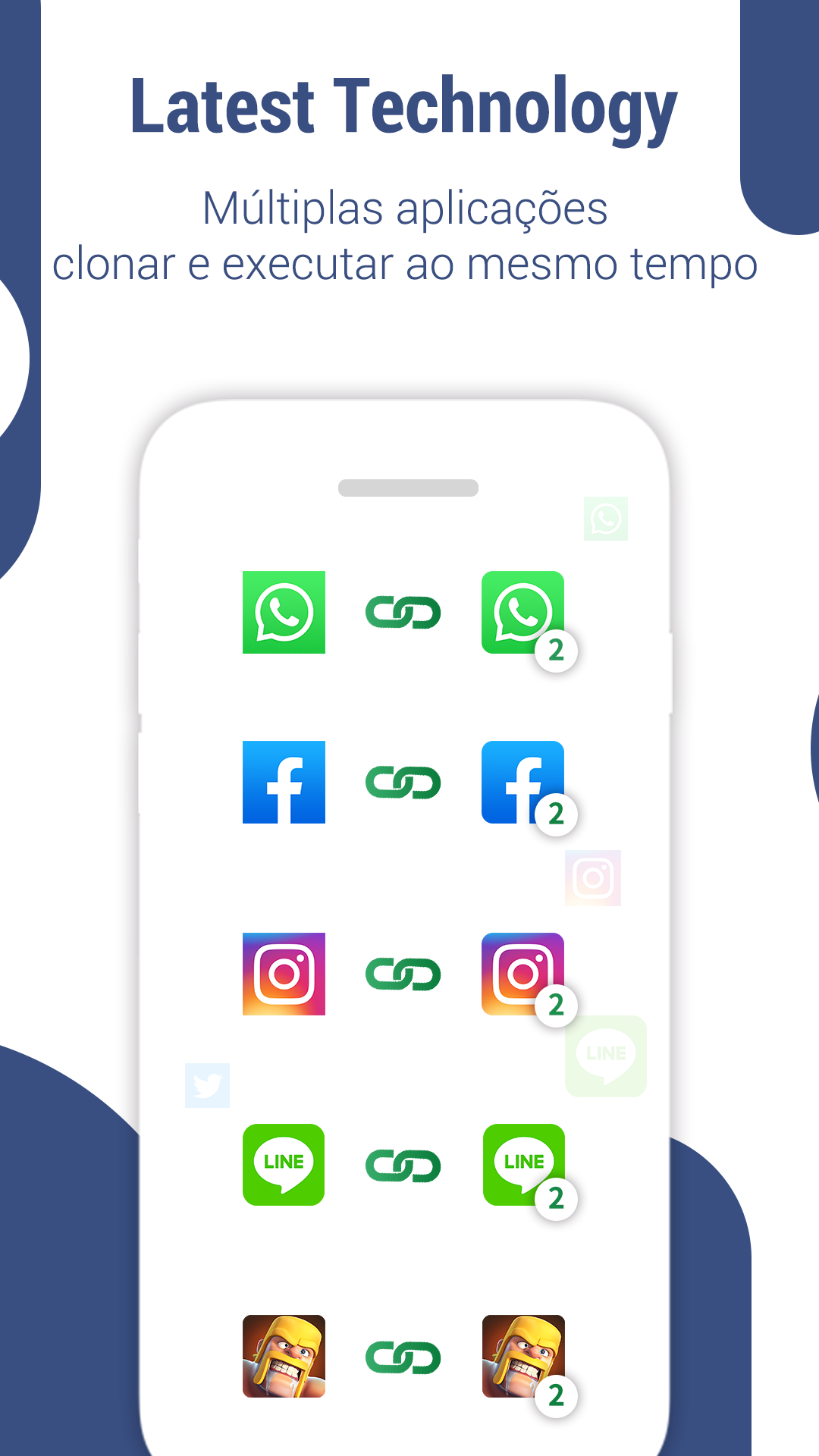 Funções principais• Suporte para clonagem e execução da maioria dos aplicativos como WhatsApp, Facebook, Clash of Clans.