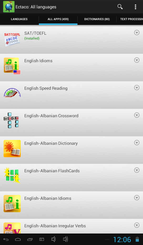 • SAT/TOEFL: This application will help students with SAT preparation through SAT words, roots, math terms, critical reading and sentence completion, grammar, vocabulary, math problem solving, and essay hints.