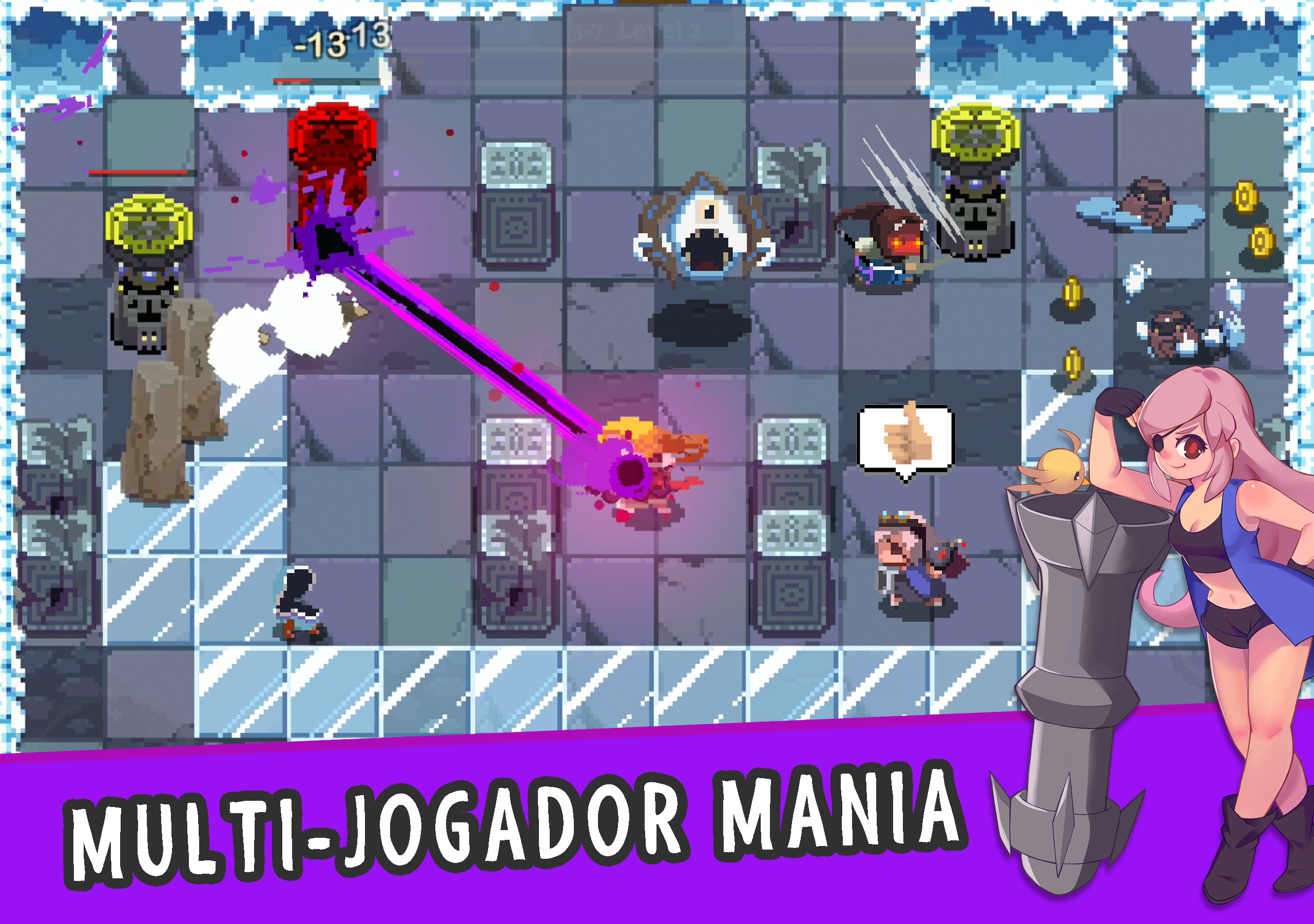 Leve seus amigos numa aventura multi-jogador, onde vocês lutam juntos na masmorra. Ou desafie seus amigos numa luta épica e seja o último sobrevivente!