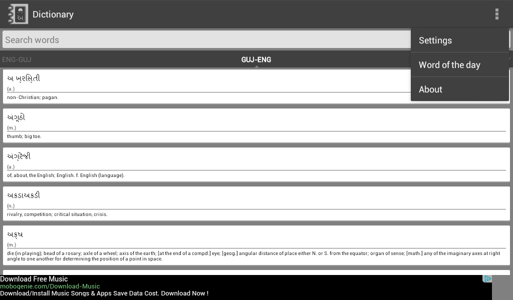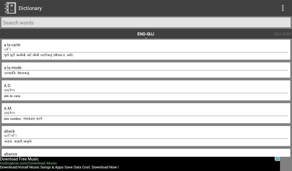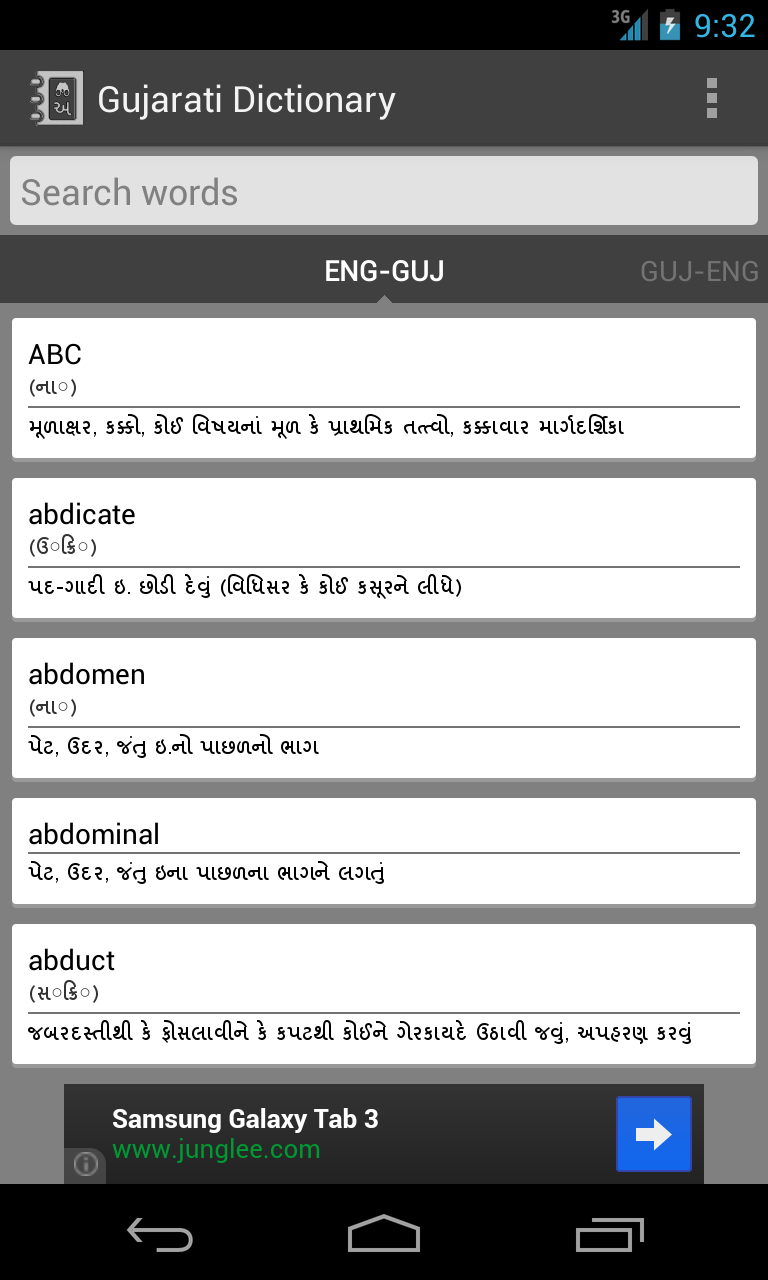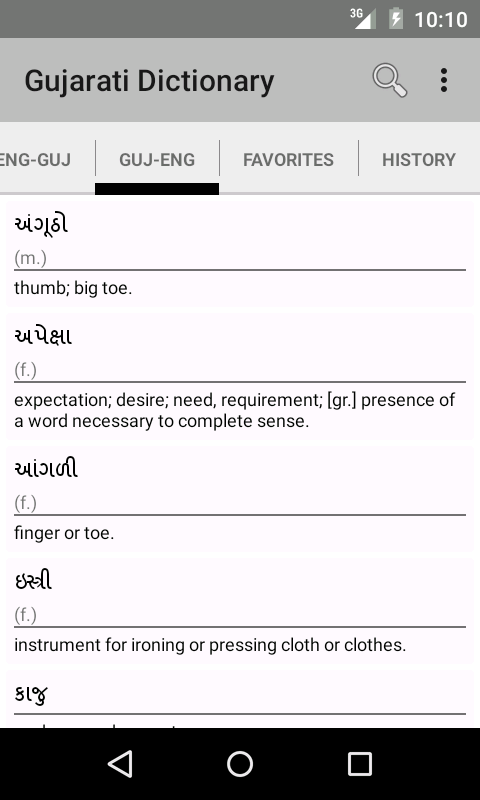 Best Gujarati Dictionary in the market. It has more than 50k English words with Gujarati and English meanings.