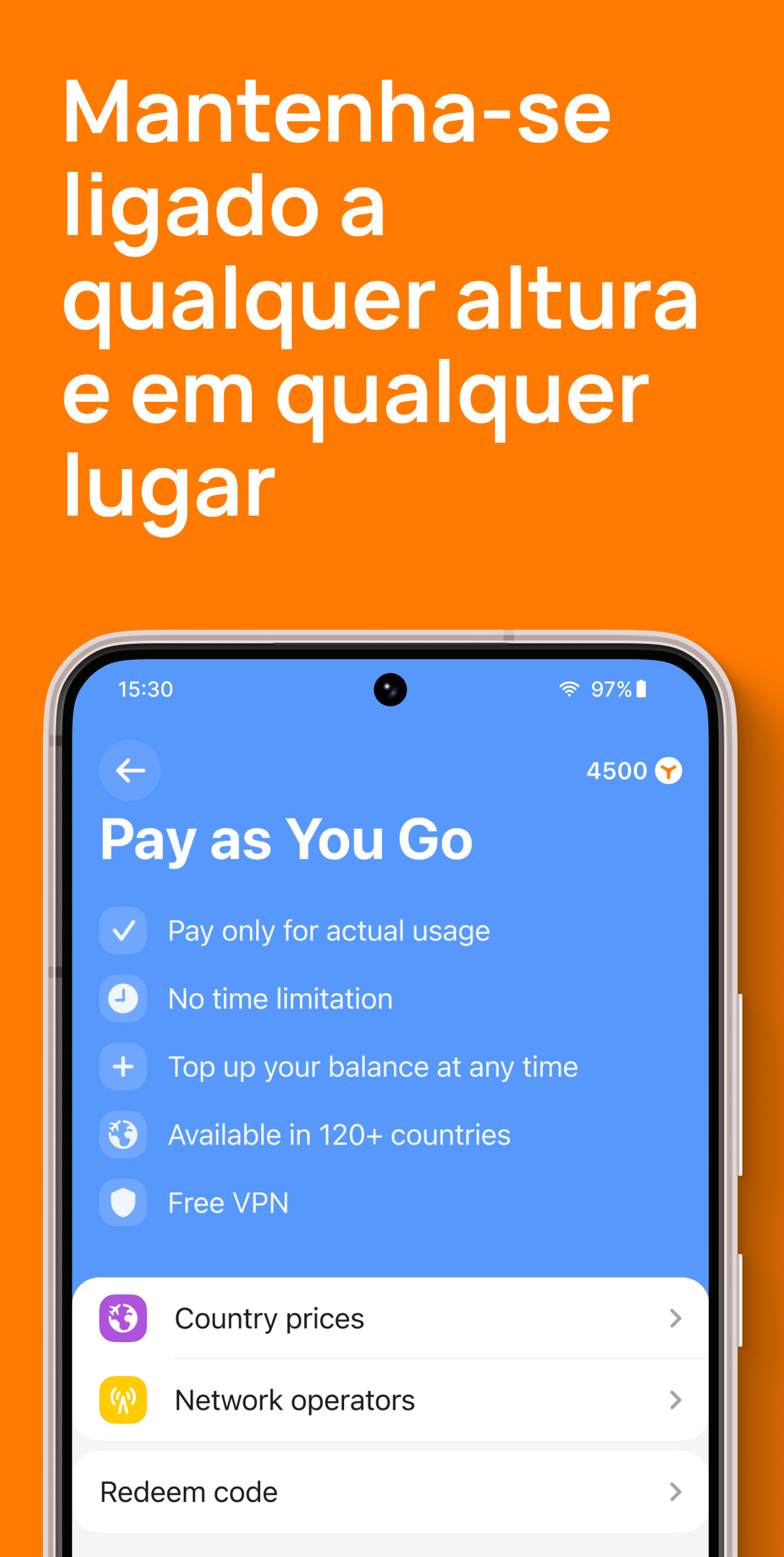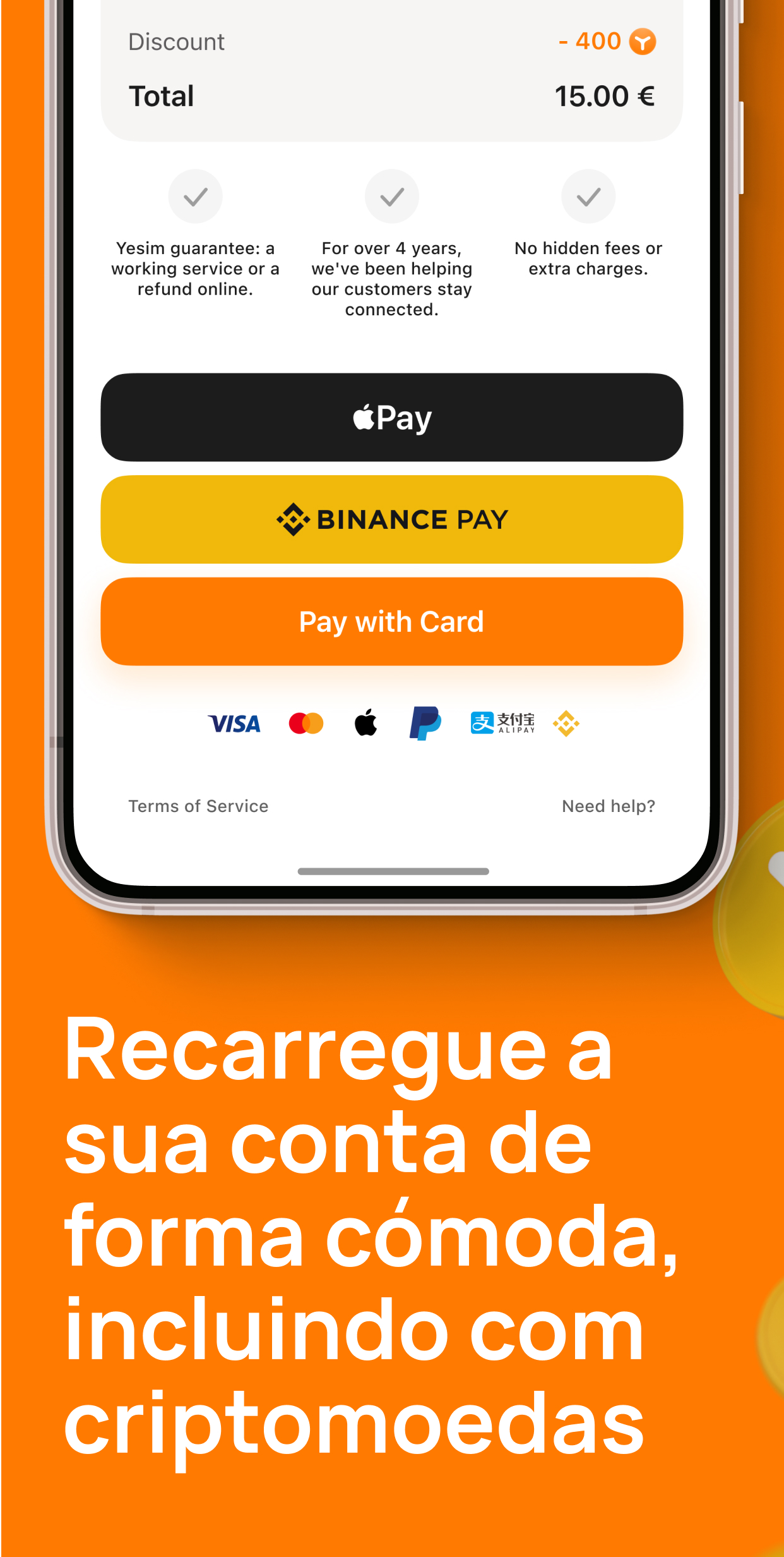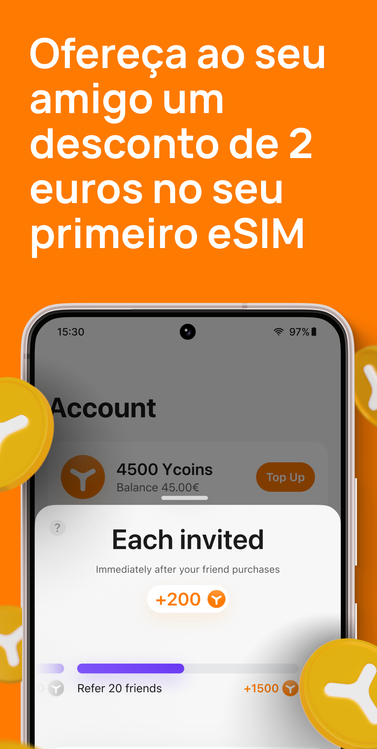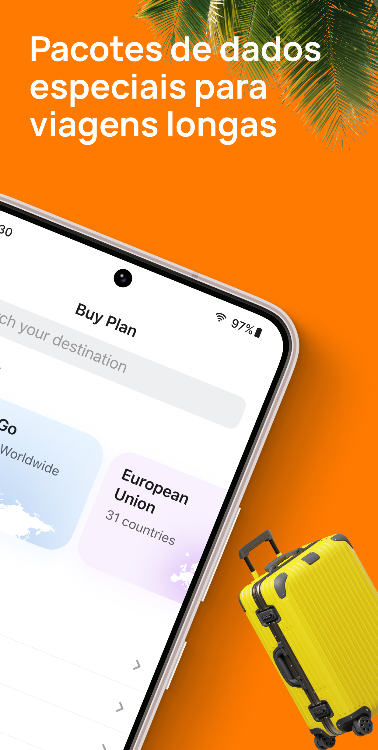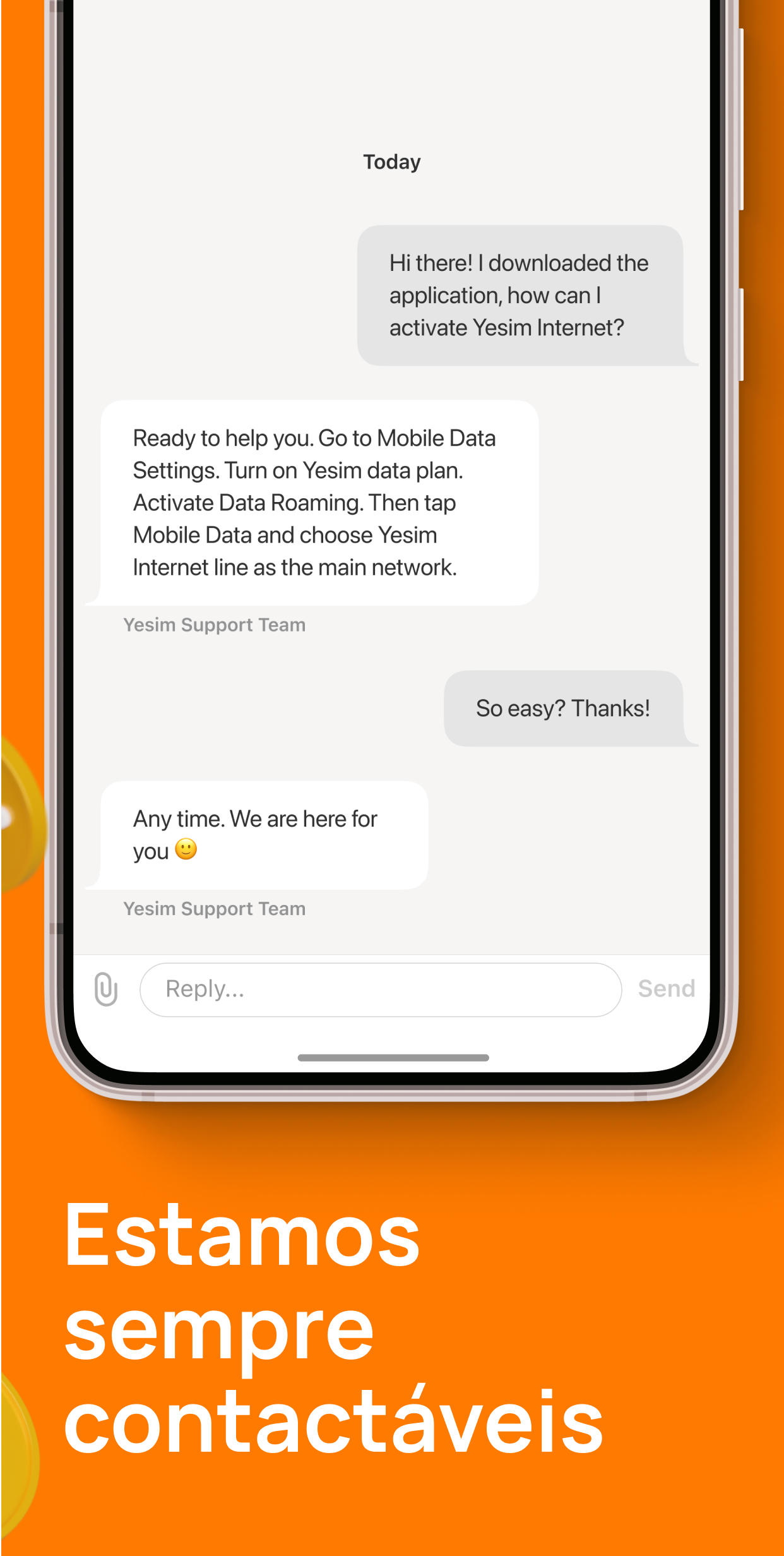 Diga YESIM à liberdade de viajar. Com telefones compatíveis com eSIM - a aplicação de viagem Yesim liga-o às melhores redes de telemóveis em todo o mundo - mais de 120 países para onde viajar com uma única aplicação. Além disso, com a nossa nova funcionalidade - número de telefone virtual, pode receber verificações de mensagens SMS ou outras comunicações importantes diretamente na aplicação Yesim, sem precisar de um eSIM! Os dados móveis eSIM da Yesim permitem fazê-lo. Obrigatório para viajantes casuais, viajantes de negócios e exploradores. Processo de instalação super rápido e fácil. Sem necessidade de Wi-Fi e sem roaming móvel. Sem dual Sim. Sem cartão SIM. E também sem preocupações. Basta escolher um pacote de dados adequado, comprá-lo e carregá-lo no seu telemóvel antes de viajar. Isto permite-lhe evitar grandes encargos com dados quando viaja internacionalmente. Porquê Yesim? - Processo de instalação rápido; - Carregamentos fáceis, onde quer que esteja; - Não necessita de mudar de cartões SIM; - Sem routers Wi-Fi nos bolsos. Apenas um telemóvel! Como é que funciona? Passo 1: Possuir um telemóvel com capacidade eSIM. Seja um orgulhoso proprietário de um dos seguintes dispositivos: Dispositivos Android compatíveis com Yesim a partir de abril de 2023: Galaxy A54 Galaxy S23, S23+, S23 Ultra Galaxy S22 5G, S22+ 5G, S22 Ultra 5G Galaxy S21 5G, S21+ 5G, S21 Ultra 5G Galaxy S20, S20 5G, S20+, S20+ 5G, S20 Ultra, S20 Ultra 5G Galaxy Note20, Note20 5G, Note20 Ultra 5G Galaxy Fold Galaxy Z Fold4 Galaxy Z Fold3 5G Galaxy Z Fold2 5G Galaxy Z Flip4 Galaxy Z Flip3 5G Galaxy Z Flip and Z Flip 5G Pixel 7, 7 Pro Pixel 6, 6a, 6 Pro Pixel 5, 5a 5G Pixel 4, 4a, 4 XL, 4a 5G Pixel 3, 3a, 3 XL, 3a XL Huawei P40 and P40 Pro* (not the P40 Pro +) Huawei Mate40 Pro Sony Xperia 10 III Lite Sony Xperia 10 IV Sony Xperia 5 IV Sony Xperia 1 IV Motorola Razr 2019 and 5G Motorola Edge (2023), Edge (2022) Motorola Edge 40, 40 Pro Motorola Moto G (2023) Nokia XR21, X30, G60 OnePlus 11 Nuu Mobile X5 Oppo Find X3, X5, X3 Pro, X5, X5 Pro Microsoft Surface Duo and Duo 2 Honor Magic 4 Pro, Magic5 Pro Xiaomi 12T Pro Aviso: a compatibilidade dos dispositivos também varia consoante o país. Consulte a lista de telemóveis com suporte para eSIM - https://yesimsupport.zendesk.com/hc/articles/360006059318 Passo 2: descarregue a aplicação. Passo 3: encontre o seu destino a partir de uma lista. Temos mais de 120 países disponíveis. Irá encontrar algo para a sua aventura. Passo 4: compre e instale o seu eSIM. Instalação com um clique! Ligue-se a mais de 120 países com apenas um toque. É muito fácil. Visite yesim.app para mais informações.