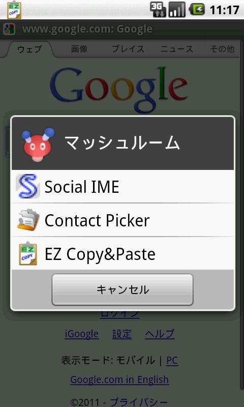 ⑤ マッシュルームからアプリを呼び出して、選択した定型文を入力欄に貼り付けることができます。コピー先の入力欄で、登録済みの定型文のタイトルを入力状態(確定前)でマッシュルームを起動すると入力と一致する項目のみ表示することができます。