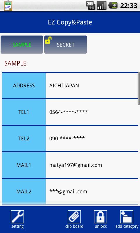 ③ カテゴリは他人から見られないようにパスワードロックができます。