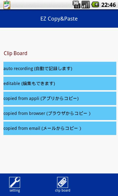④ アプリ起動中はブラウザなどでコピーしたテキストを自動で記録します。記録したテキストは、編集が可能で、他のアプリで使い回すことができます。