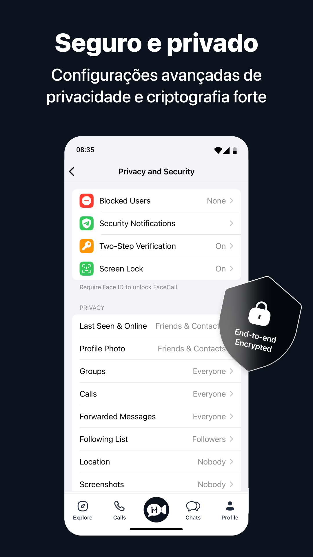 • Seguro e Privado: Sua privacidade é nossa prioridade. O FaceCall é construído com medidas de segurança líderes do mercado para proteger suas informações e manter suas comunicações confidenciais.