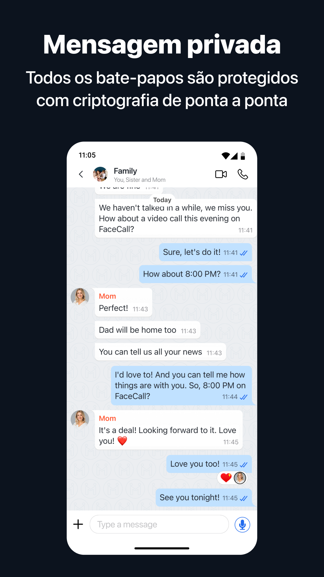 • Mensagens seguras e compartilhamento de arquivos para colaborar com eficiência.