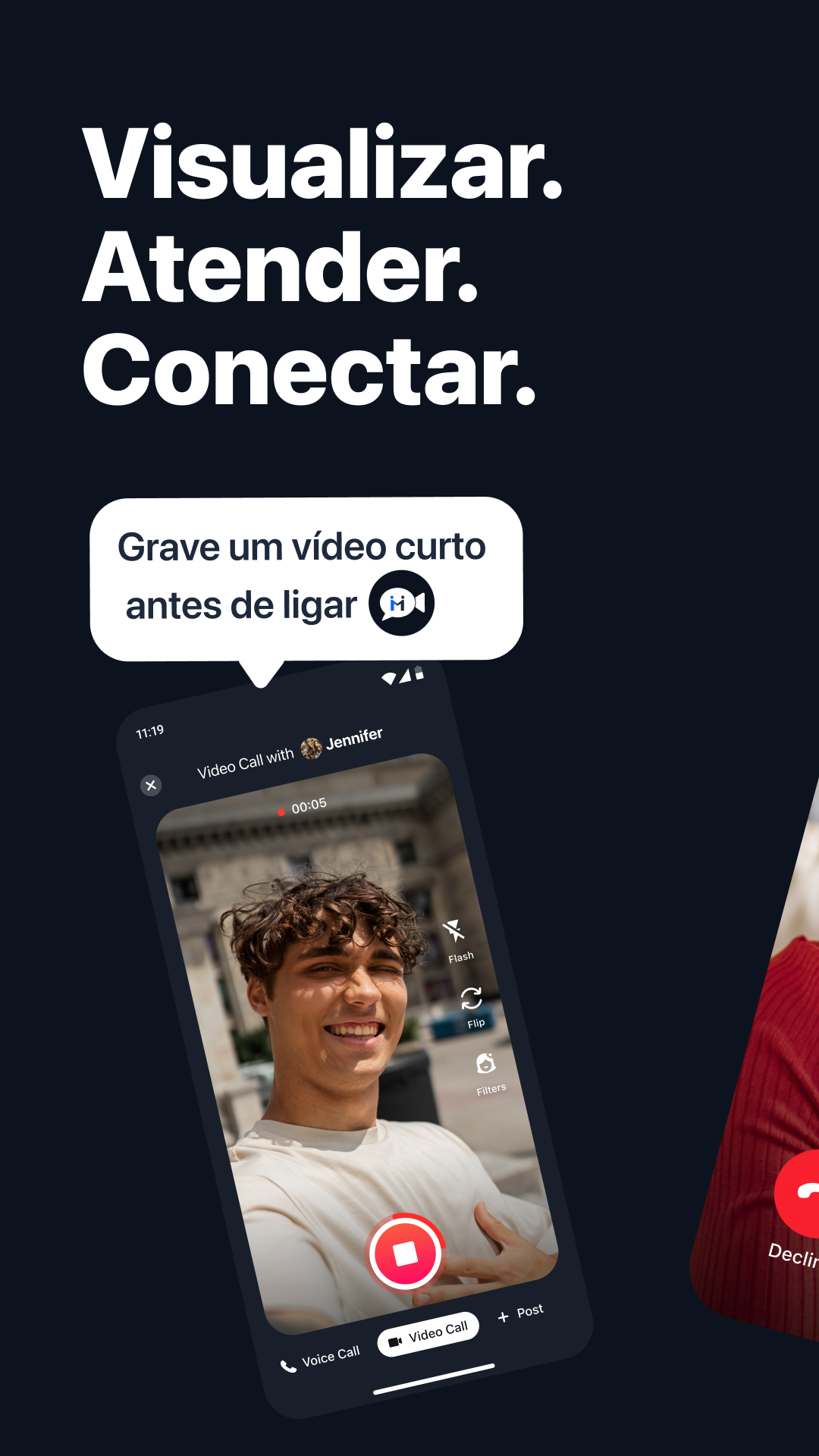 • Video CallerID: Torne cada chamada memorável antes mesmo de falar. Nossa funcionalidade Video CallerID permite que você se apresente com um vídeo curto e envolvente, garantindo que você se destaque e cause uma impressão duradoura. As videochamadas nunca serão as mesmas depois que você experimentar nosso aplicativo. Garantido!