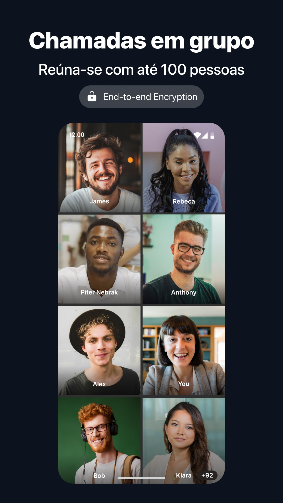 • Conecte-se com até 100 participantes em uma única videochamada: Reúna grandes grupos para conversas face a face, apresentações ou discussões colaborativas.
