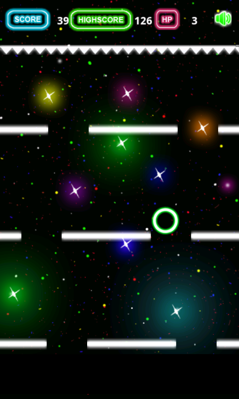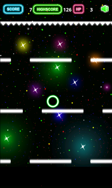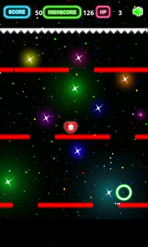 Just tilt your device to move the glowing ball right or left to fall down through the holes and avoid getting spiked at the top. Try your best to staying alive as long as possible.