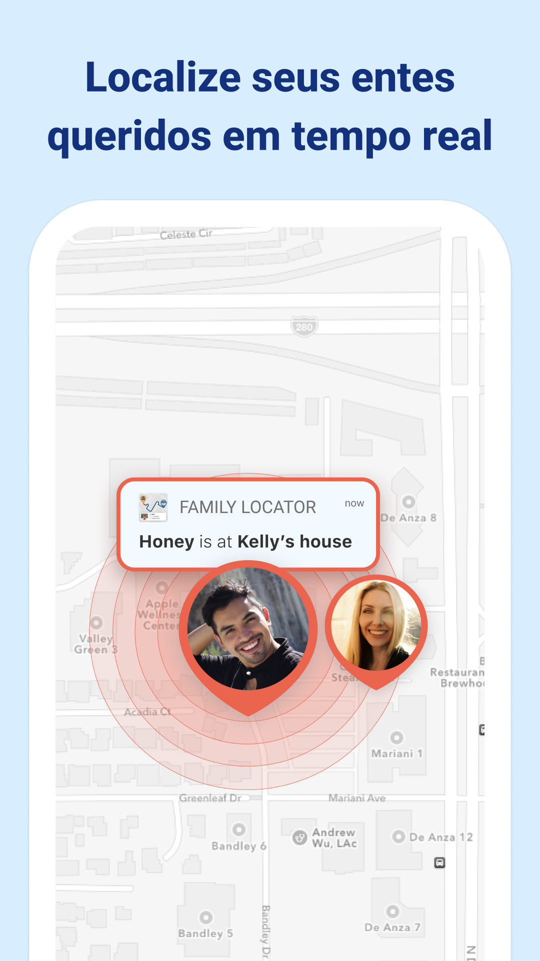 ✔️ Alertas de chegada e partida: seja notificado quando familiares chegam ou saem de locais predefinidos (por exemplo, casa, escola).